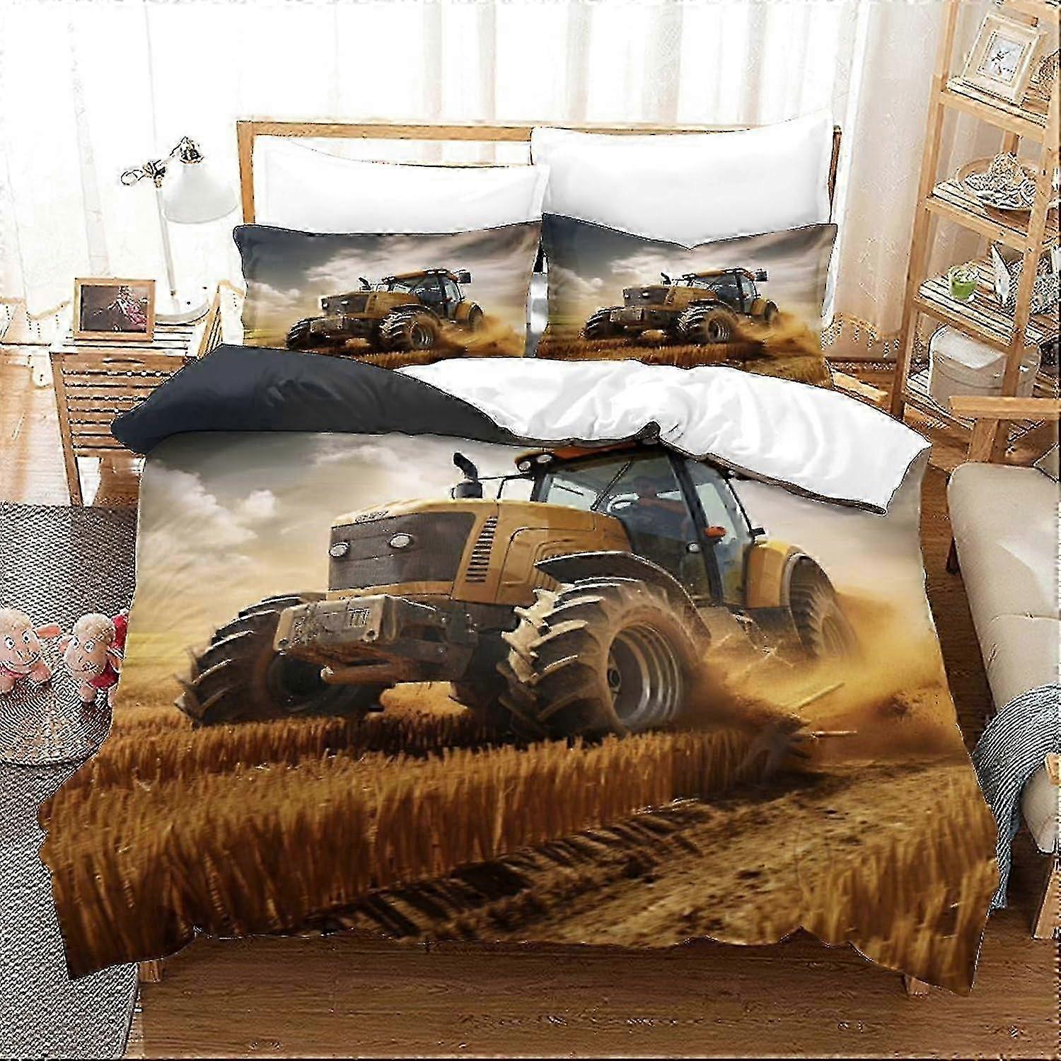 Tractor 3D Printed Comforter Cover Set Duvet Cover Bedding Set for Kids Teens Boys Room Decor Microfiber Quilt Cover 3 Pcs with Pillow Case