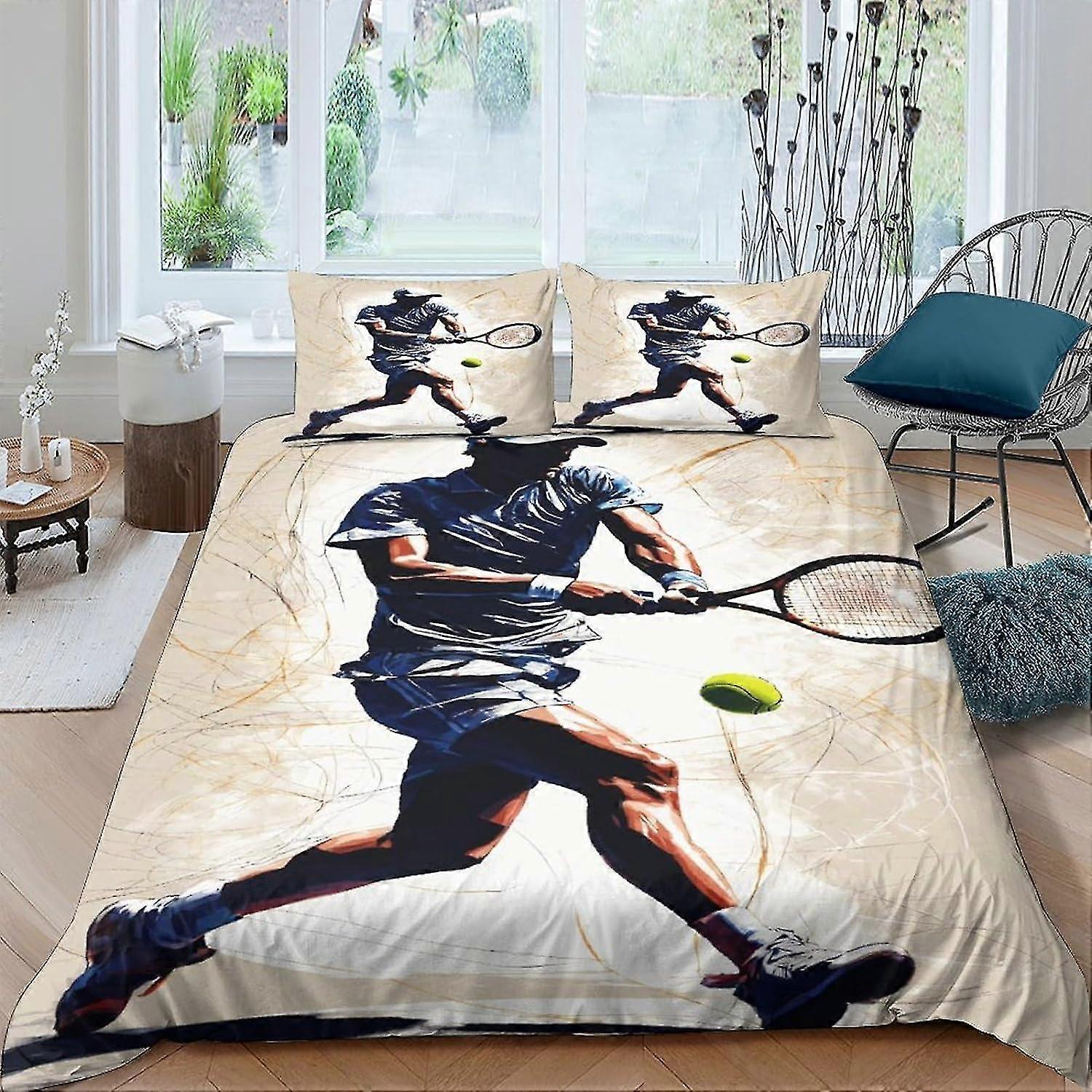 3 Pieces Sports Print Duvet Cover Set with Pillowcases, Zipper Closure Bedding Set, King Size Quilt Cover