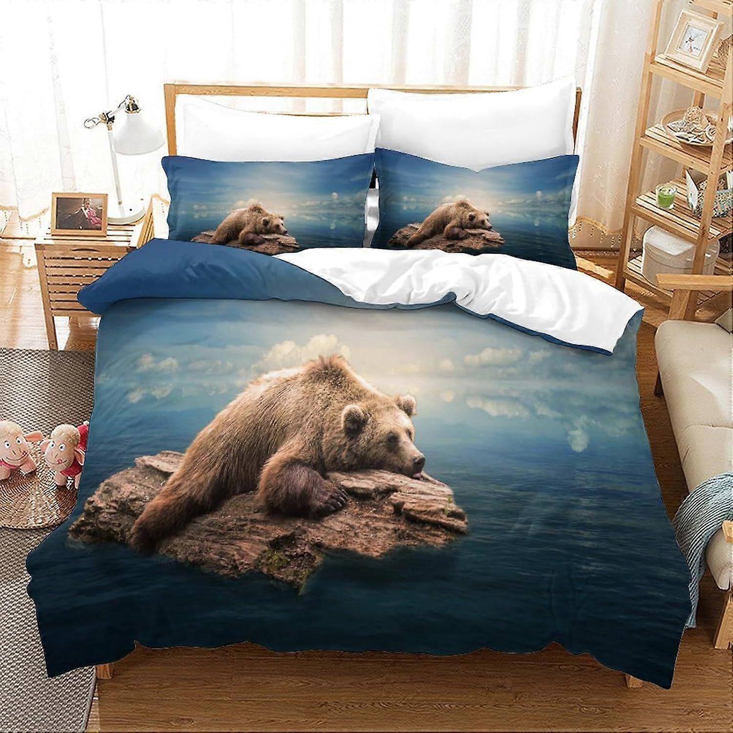 d657 Grizzly Duvet Cover Set for Kids Youth Adults Duvet Covers Double Size Bedding Set with Pillowcases Soft Lightweight Microfiber Quilt Cover with