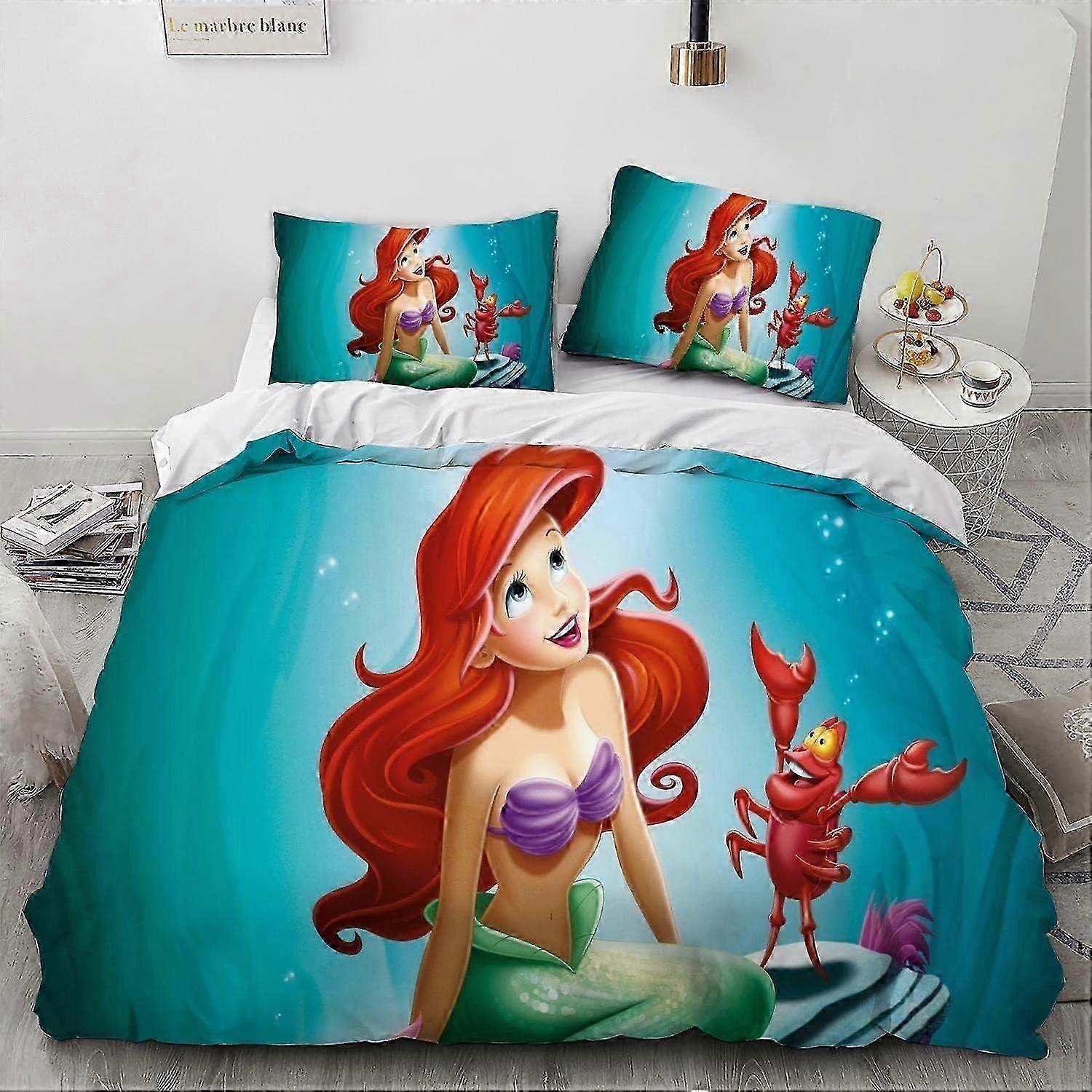 PIN3204 Fish Princess Anime Girl Duvet Cover Set, 100% Microfiber Bedding Sets, 3 Pieces Ultra Soft Skin-Friendly Comforter Cover Set (1 DuvetCover+2