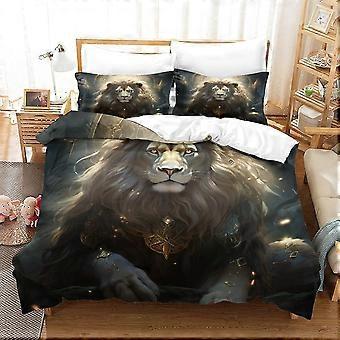 Starry Sky Lion Anime Duvet Cover Set for Kids, Soft and Breathable 3D Printed Lightweight Bedding with Pillowcase