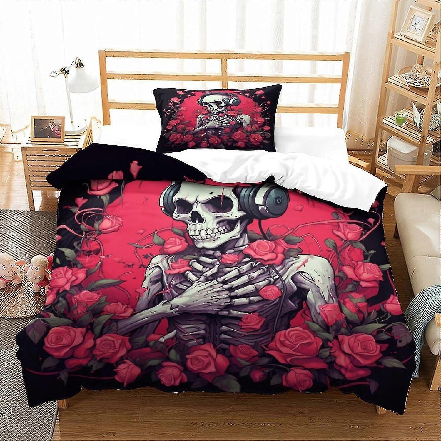 Human Skeleton Bedding Duvet Cover Set Soft Microfiber Game Controller Quilt Cover Set with Zipper Closure and Pillow Shams for Kids and Adu
