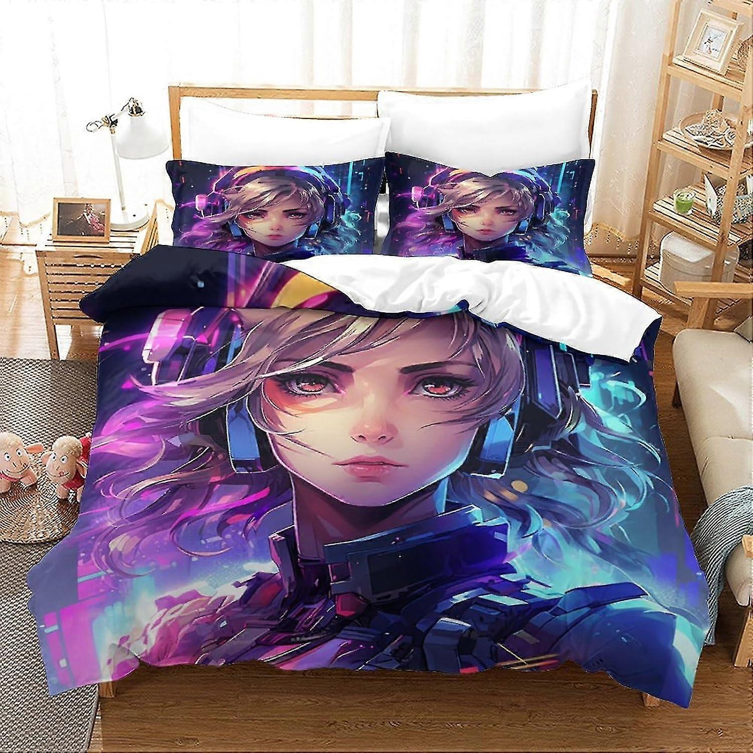 3D Print Helmet Girl Bedding Duvet Cover Set, Outer Space Design Microfibre Quilt Cover Set with Pillow, Various Sizes