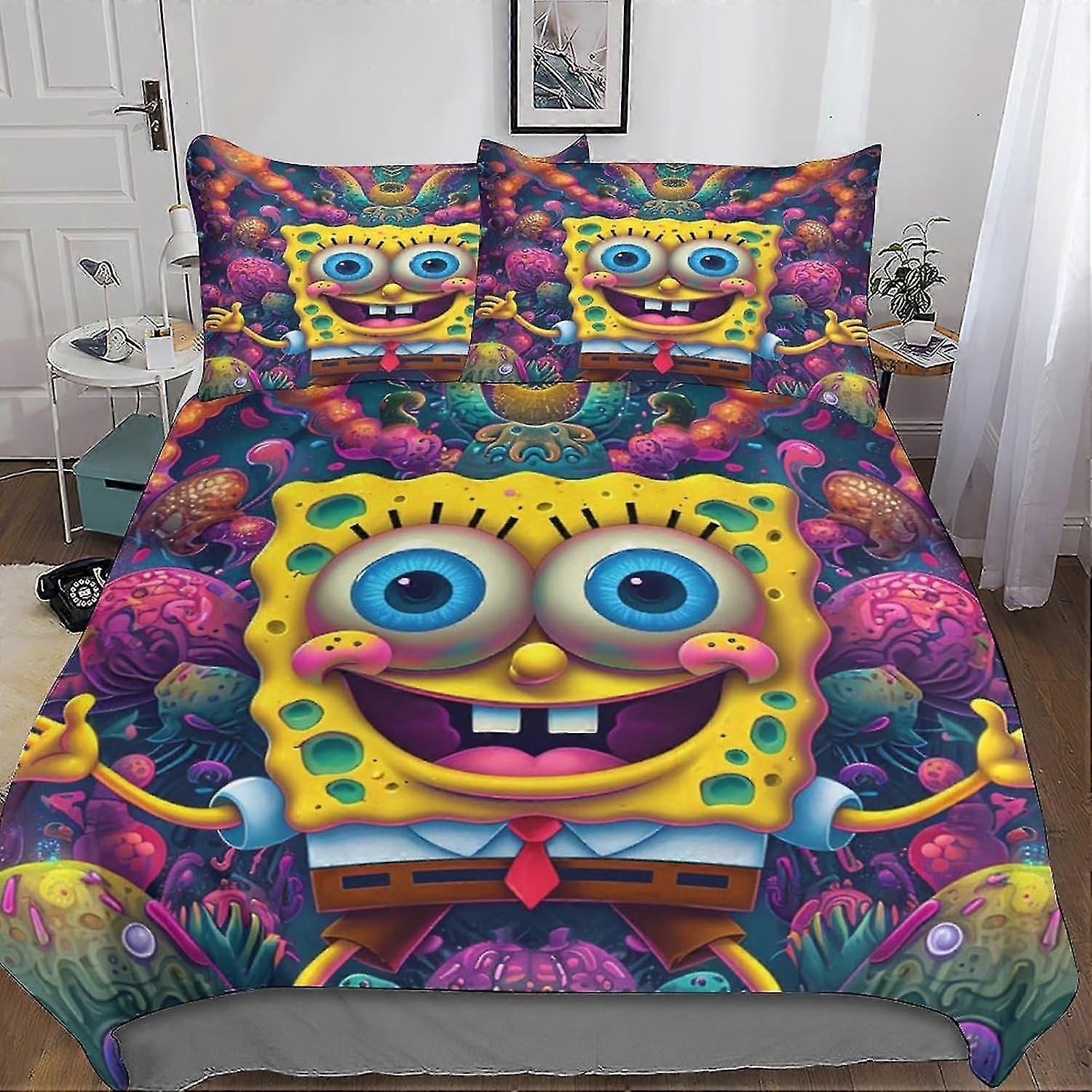 3 Pieces SpongeBob 3D Printed Cartoon Duvet Cover Set with Microfiber, Hidden Zipper Closure and Pillowcases for Bedding