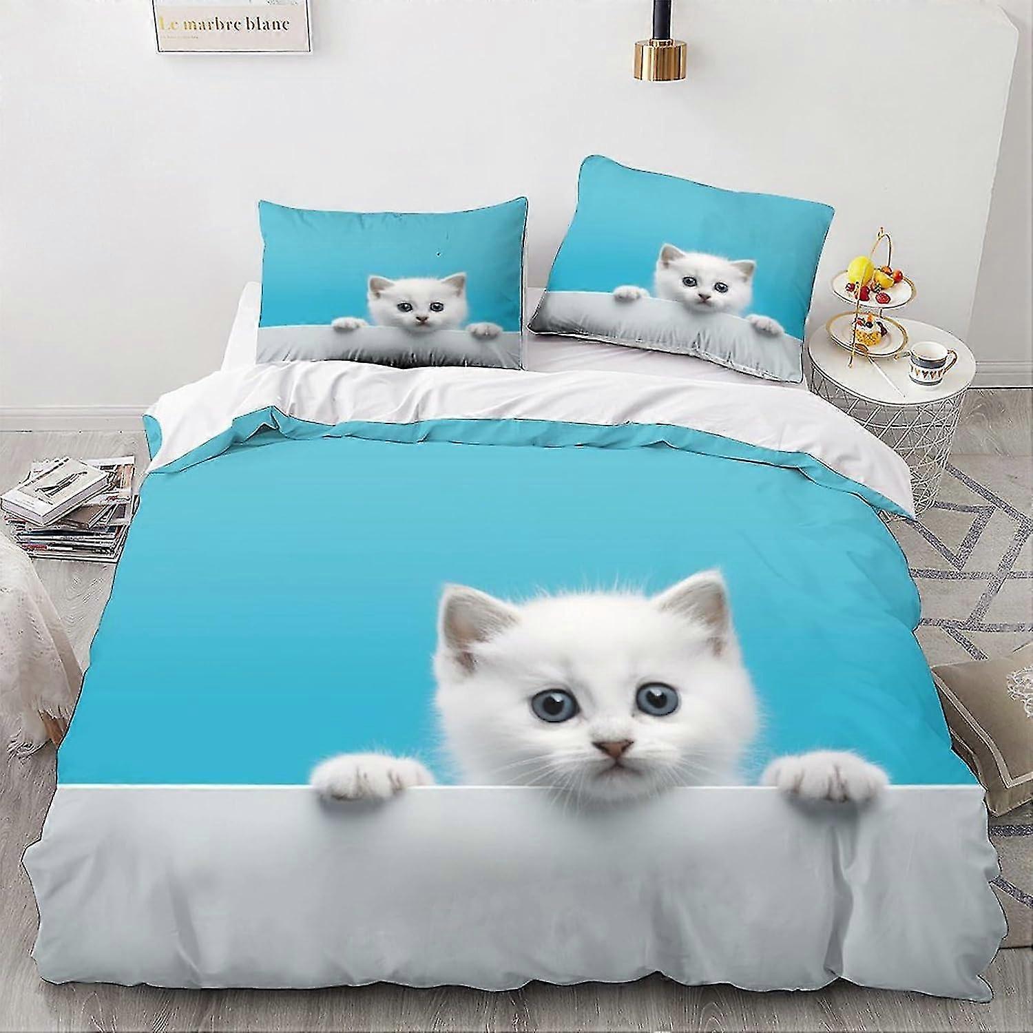 Cute Kitty Duvet Cover Set 3 Piece, Microfiber 3D Animal Bedroom Duvet Set Double