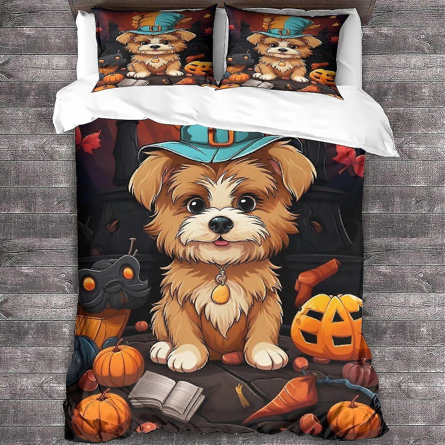 Pet Themed Halloween Duvet Cover Set with Pillow Shams Microfiber Quilt Cover Zipper 3 Pcs King