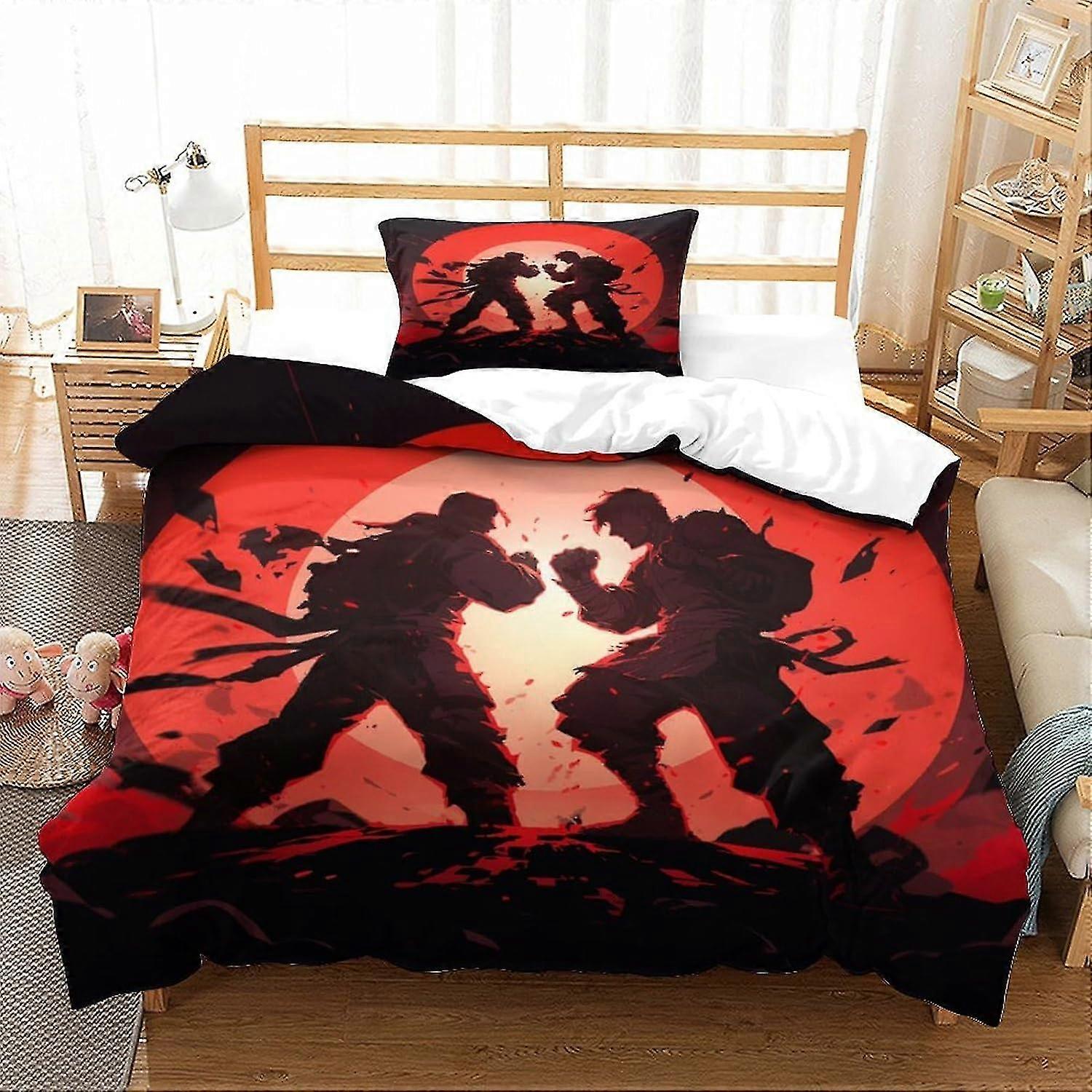 Wushu Karate Comforter Cover Set Soft Microfiber Anime Bedding Set with Zipper Closure and Pillow Shams for Kids and Adults
