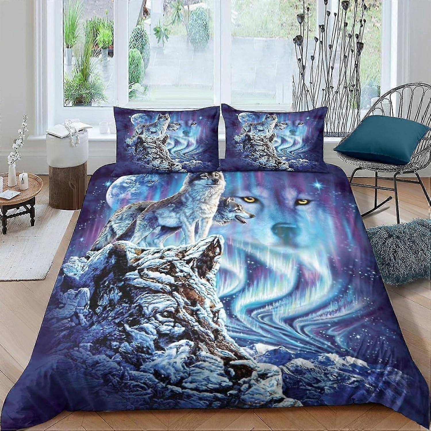 3D Printed Wolf Duvet Cover Set for Boys and Girls Soft Microfiber Bedding with Pillow Cases and Zipper Closure