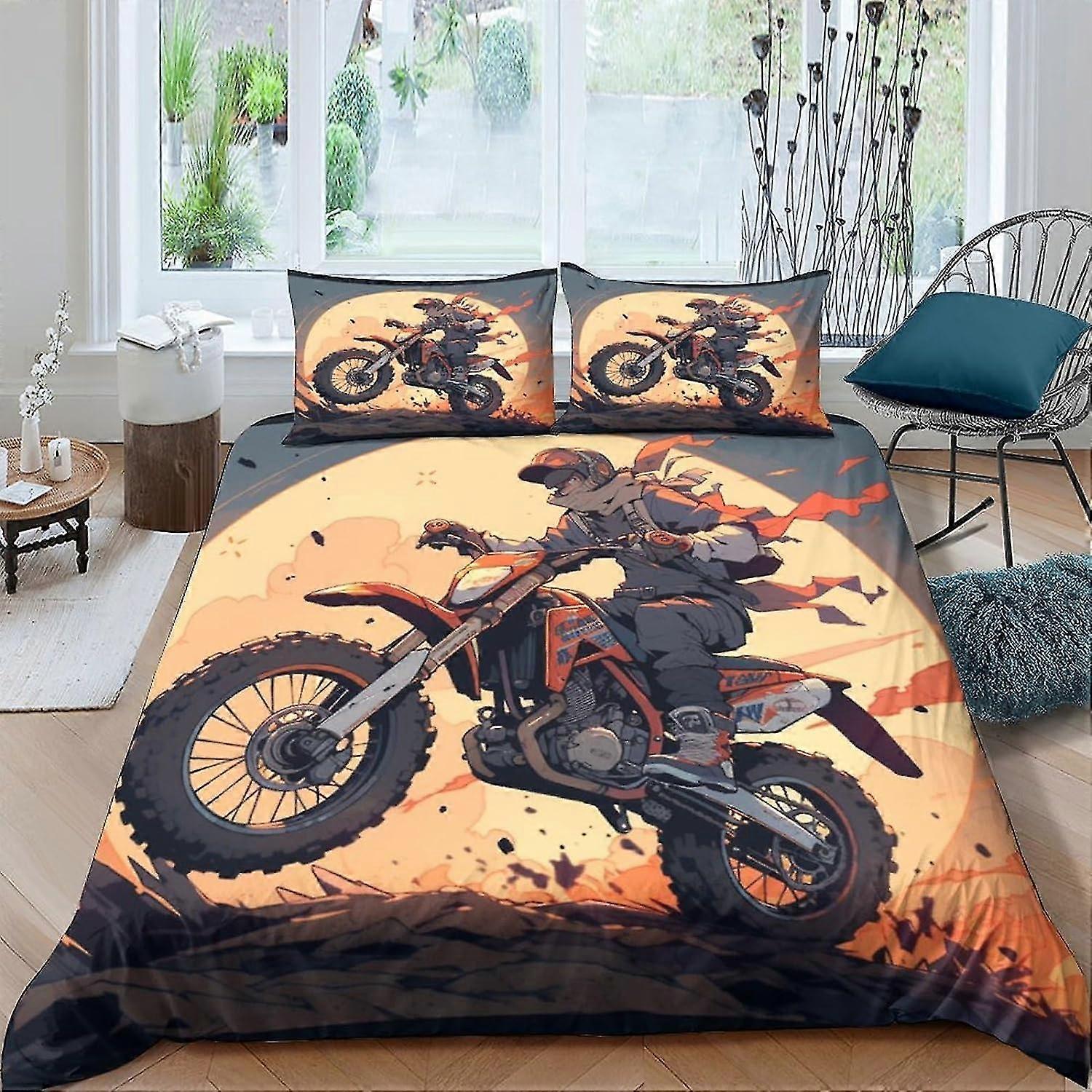 3D Printed Motocross Duvet Cover Set with Pillowcases, 3 Pcs Soft Microfiber Bedding for Extreme Sports
