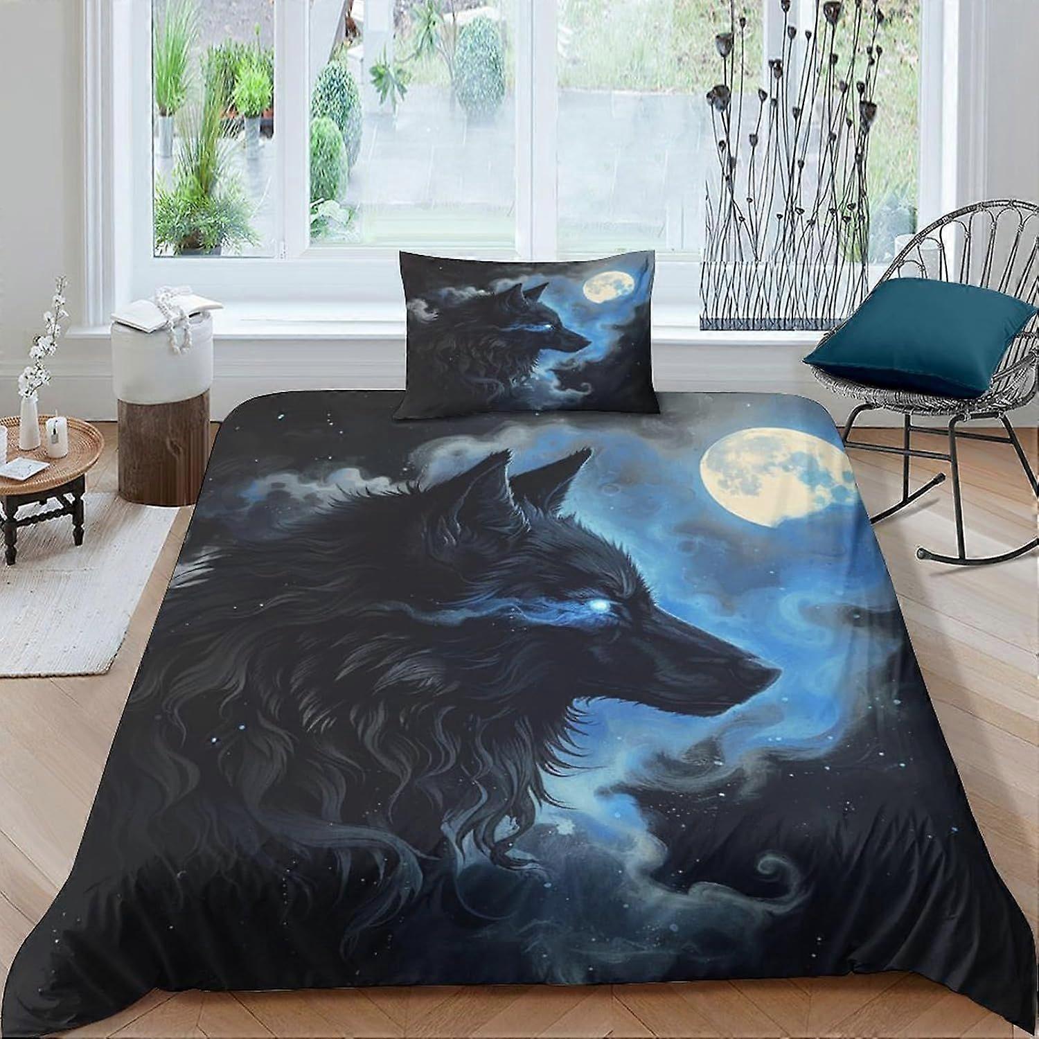 e16 Wolf Duvet Cover Set 3 PCS Hotel Quality Quilt Cover Bedding Bed Covers with Pillowcases with Zipper Closure Breathable Stylish Comforter Single n