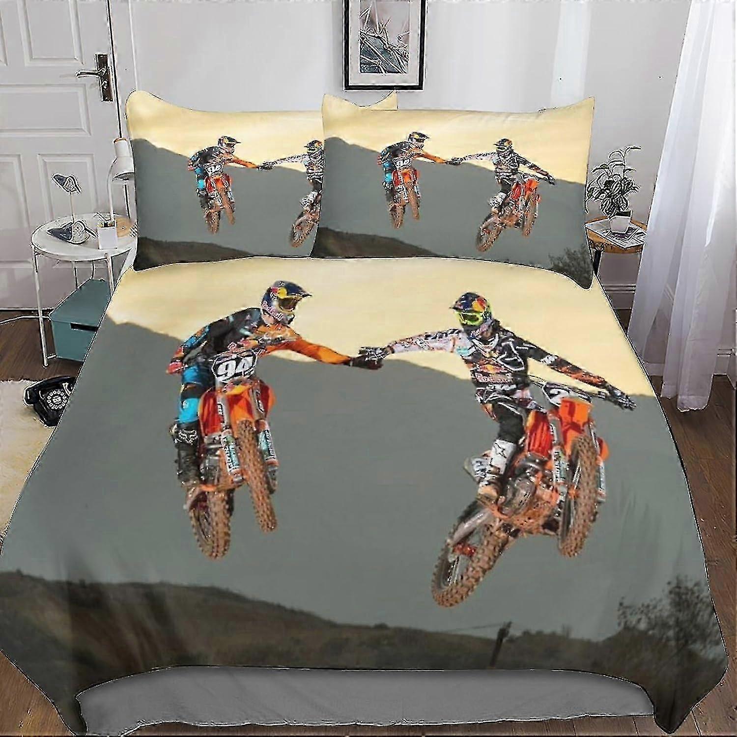 EKENOZ Motocross Bedding Duvet Cover Set,3D Extreme Sports Print Quilt Cover Bedding Sets,Microfibre Duvet Cover Set with Pillowcases 3 Pieces,fo