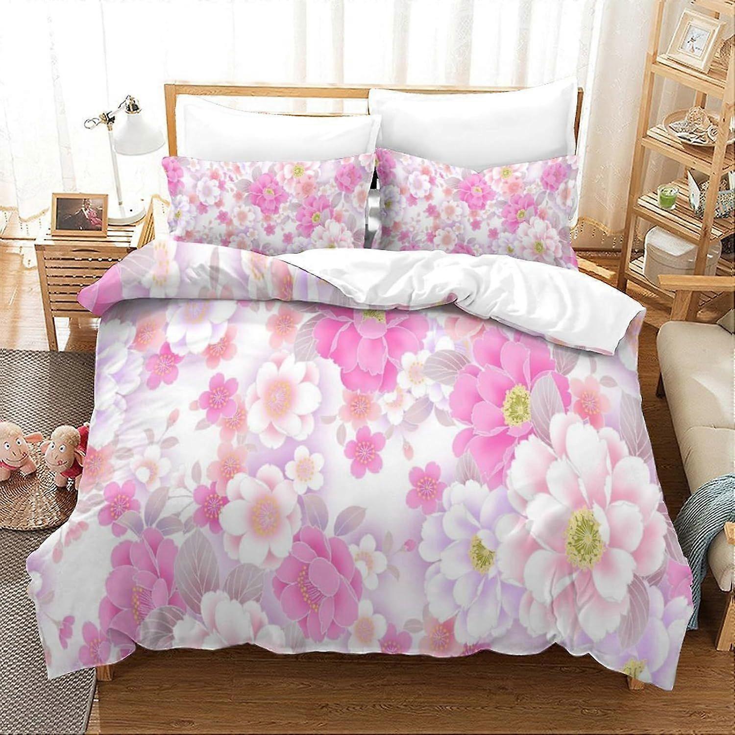 d605 Floral Duvet Cover Set for Kids Youth Adults Duvet Covers Double Size Bedding Set with Pillowcases Soft Lightweight Microfiber Quilt Cover with Z