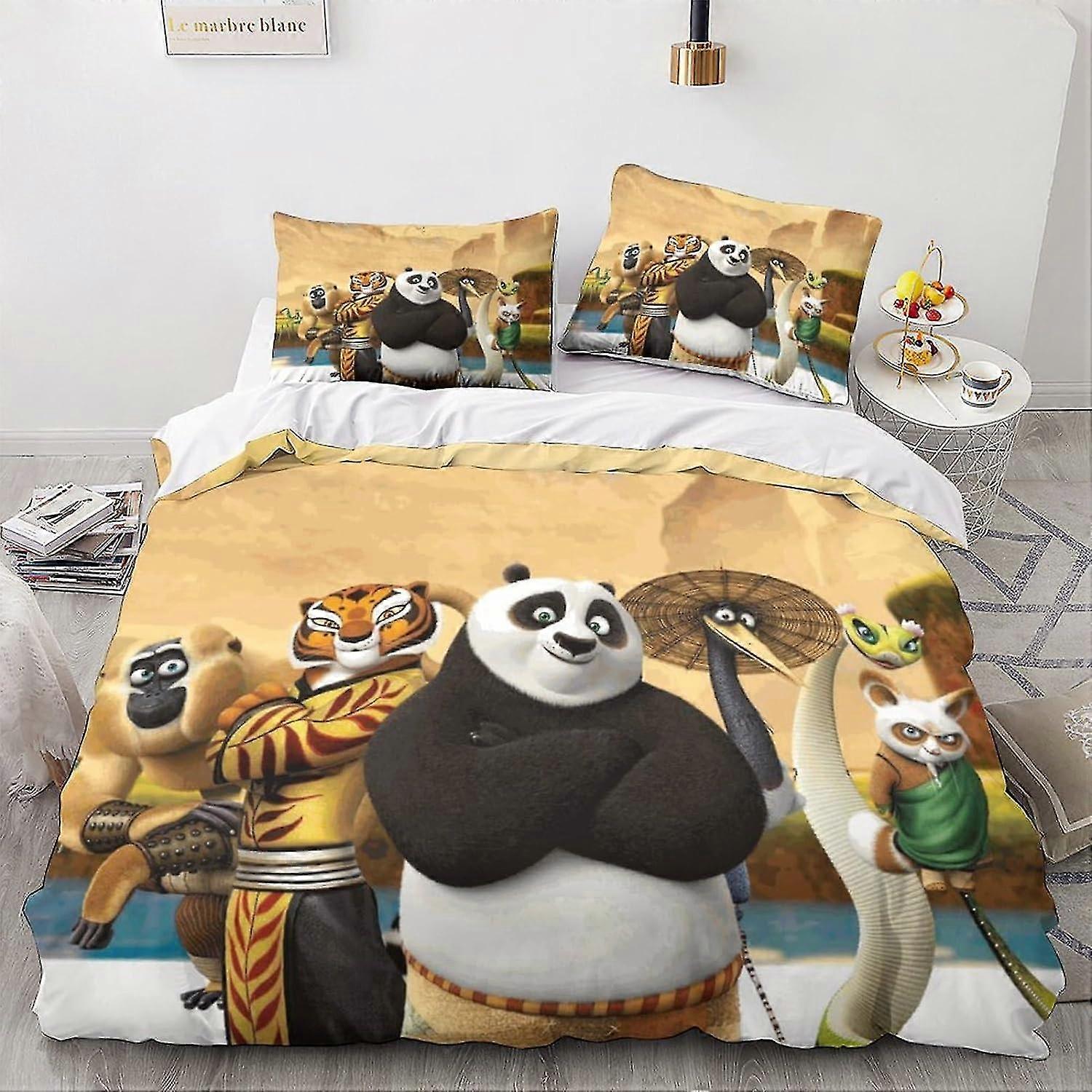 Kung Fu Panda Duvet Cover Bedding Set,3D Funny Anime Quilt Cover with Pillowcases, for Soft Microfiber Quilt Cover with Zipper Closure 3 Piece Set 202