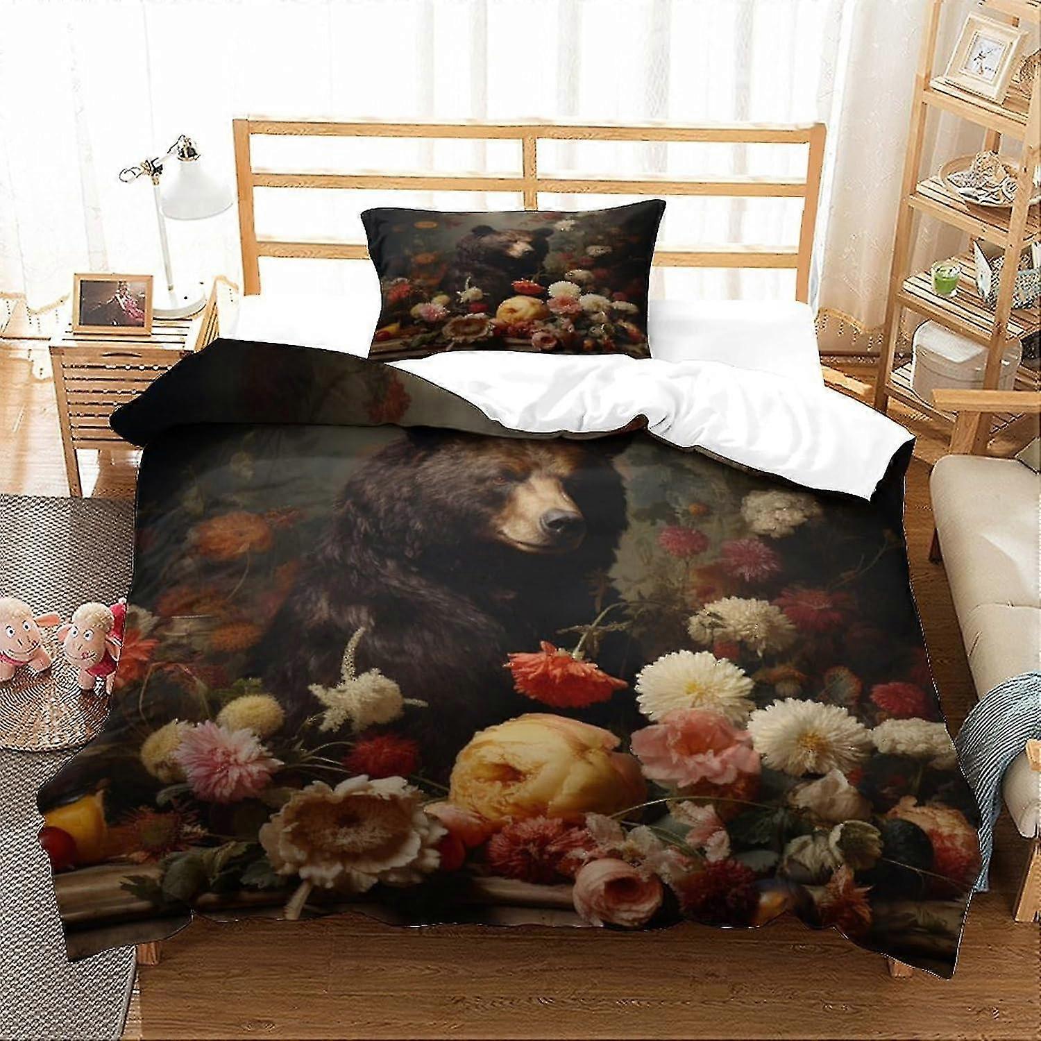 Kids Duvet Cover Set with Flower and Panda Design, Tree Branches Anime Quilt Cover, Includes Pillowcases, Single Size