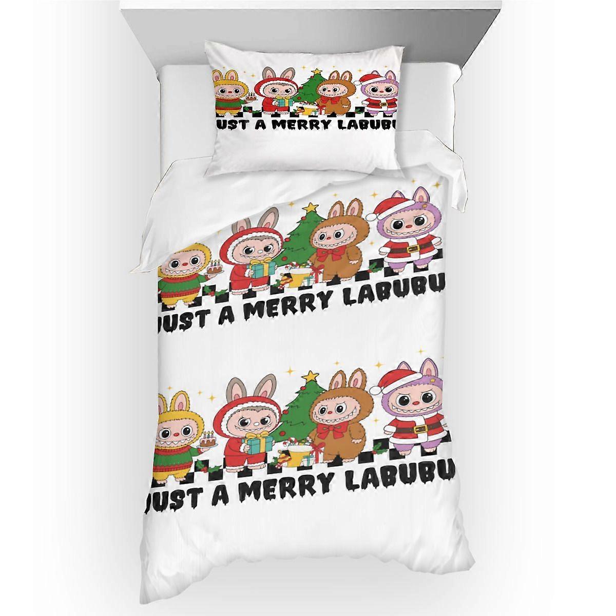 LABUUBU Christmas Party Duvet Cover Set TwinXL 3980 inch Soft Polyester 2-Piece Bedding with Cute Cartoon Characters & Holiday Tree Theme