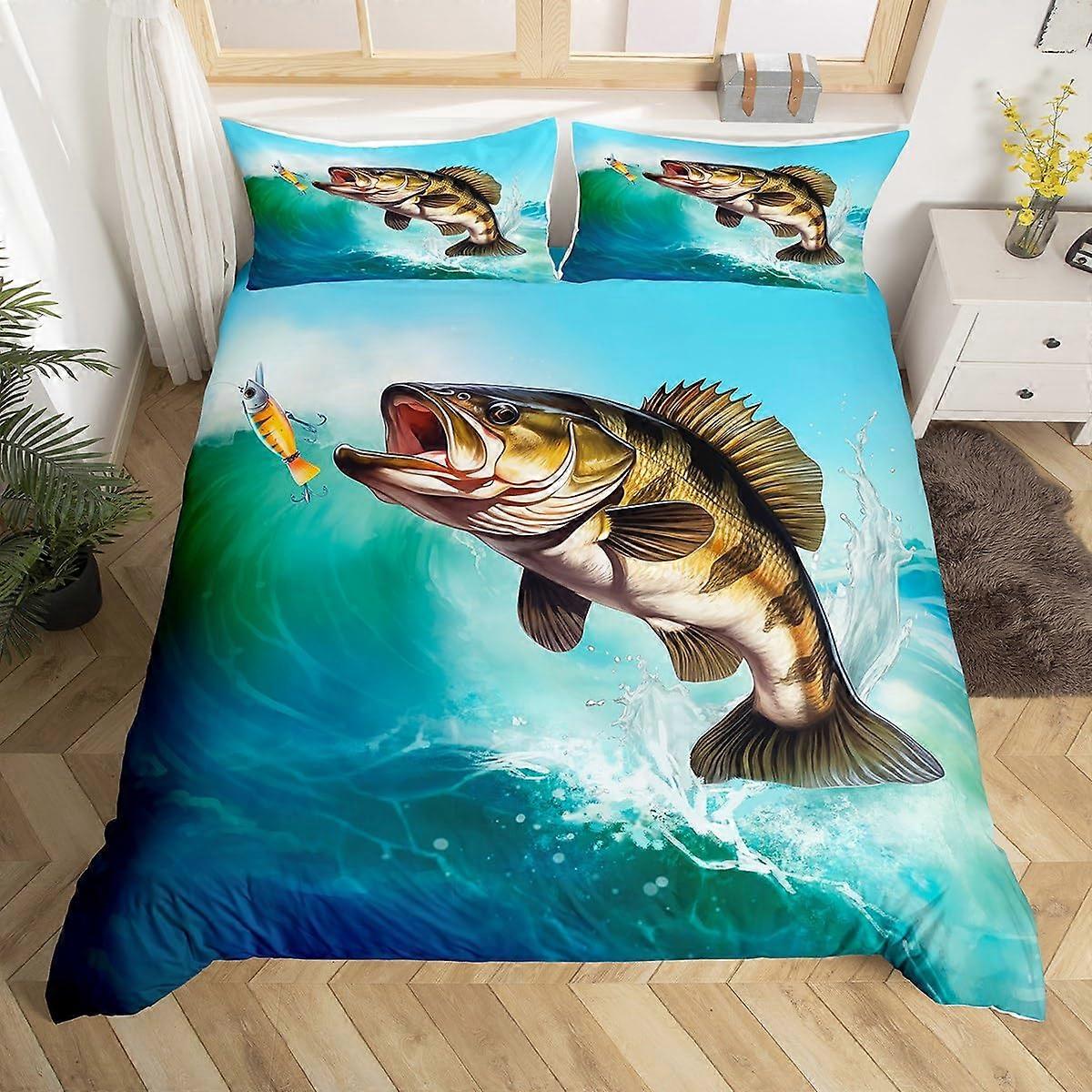 3 Pcs Queen Size Duvet Cover Set, Fishing Theme Kids Room Decor, Sea Animals Comforter Cover 90'x90'