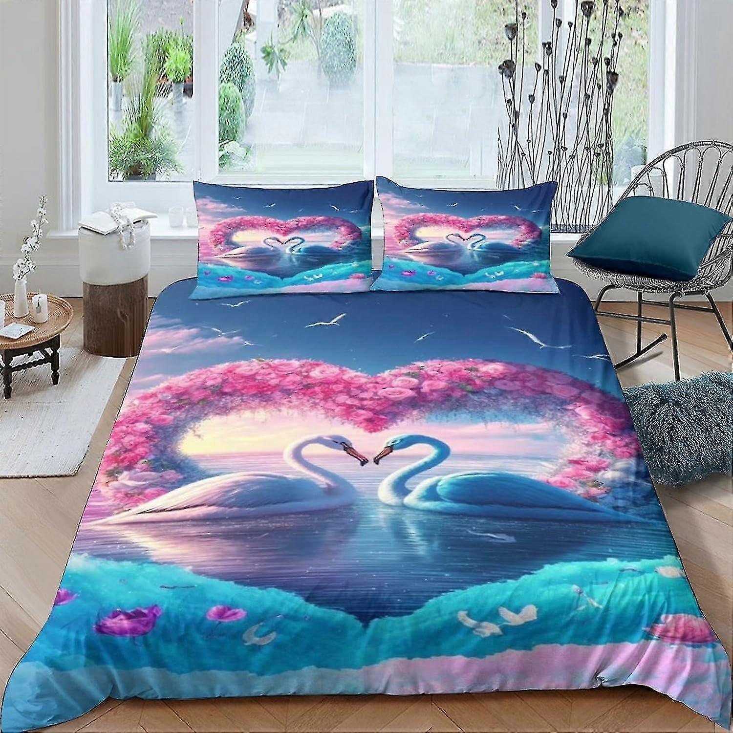 Swan Duvet Cover Set 3D Animal Bedding Set with Microfiber Pillowcases & Zipper Closure Quilt Case for King Size