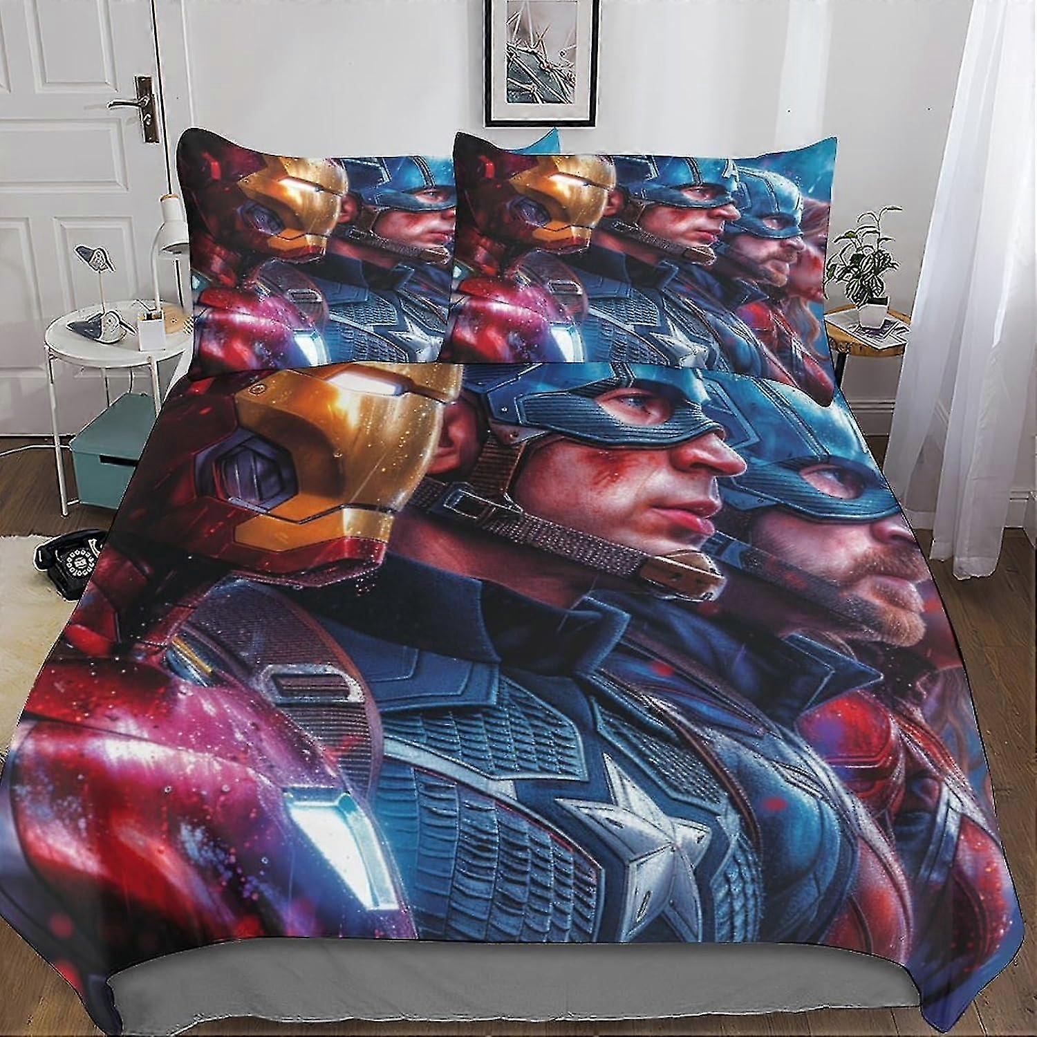 Cool Avengers Quilt Cover Set with Hidden Zipper Closure - Soft and Cozy Microfiber Movies Bedding with Striking 3D Print, 3-Piece Set