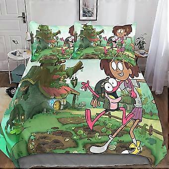 Conjunto de Capas de Edredom Amphibia Impressas em 3D, Capa de Colcha de Microfibra Macia 3 Peças com Fecho de Zíper Capa de Edredom e Fronha para Certos Sutiãs