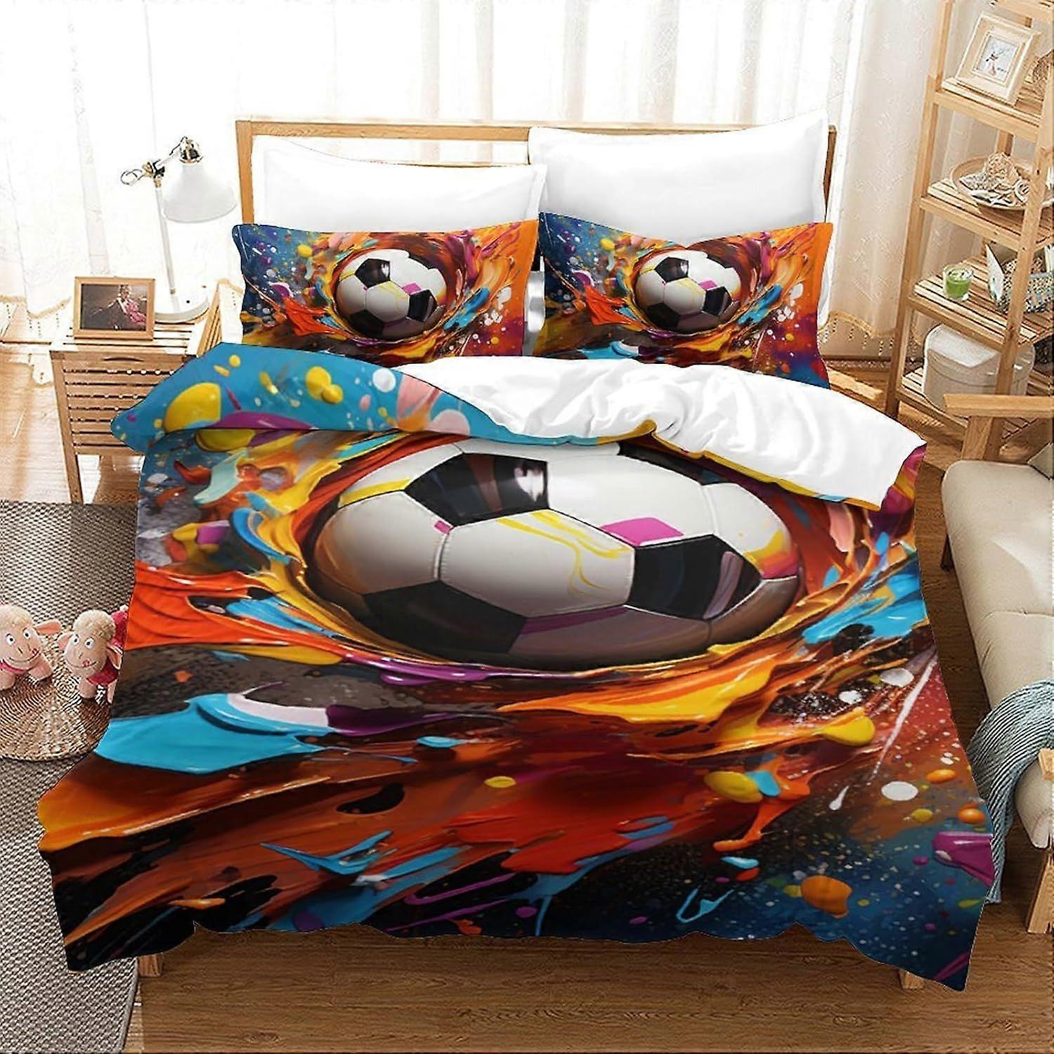 e591 Football 3D Printed Duvet Cover Set 3 Pieces Bedspread Soft Microfiber with Zipper ClosurePillowcases for Kids Girls Boys Adults Bedroom Single n