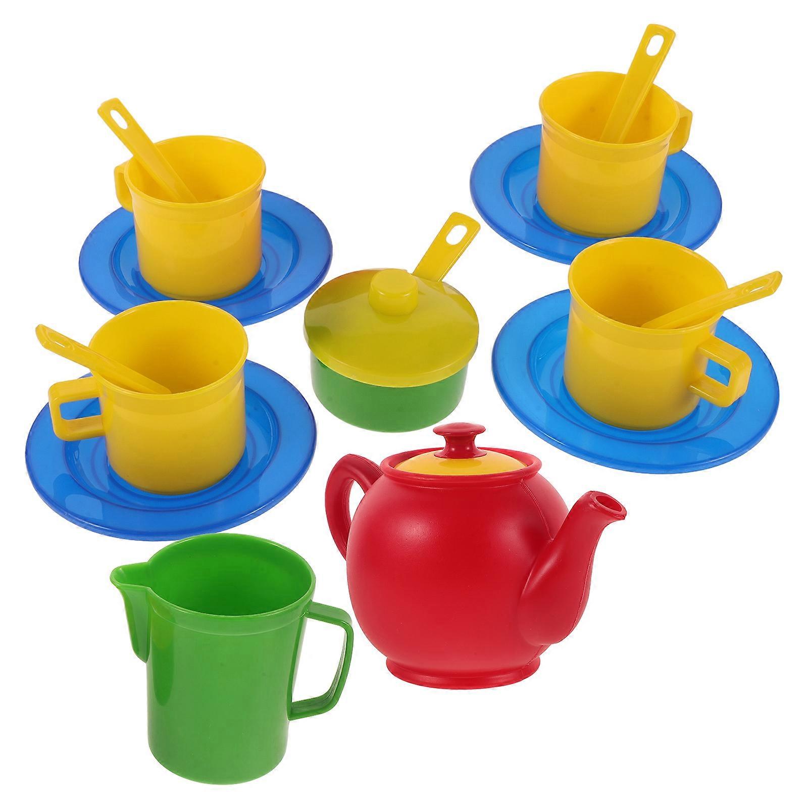 Plastic Pretend Play Tea Set with Cups, Teapot & Plates for Kids’ Role Play, Party & Social Fun