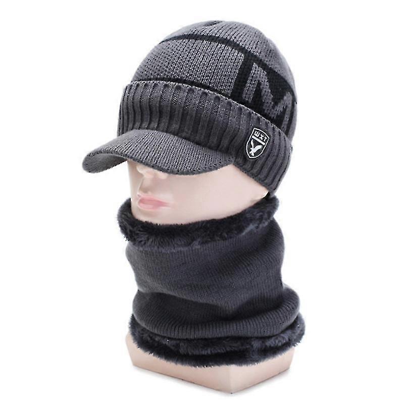 Winter W/visor Earflaps For Men Outdoor Fleece Hat Scarf Set