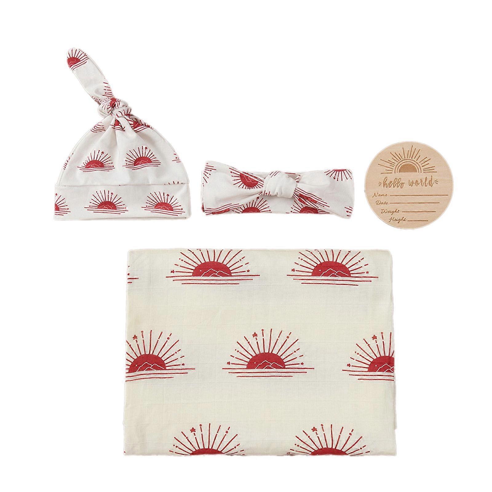 Newborn Baby Revecing Blanket and Hat Set Infant Wrap Cloth Elastic Hairband with Beanies Cap Unsiex for Boys Girls