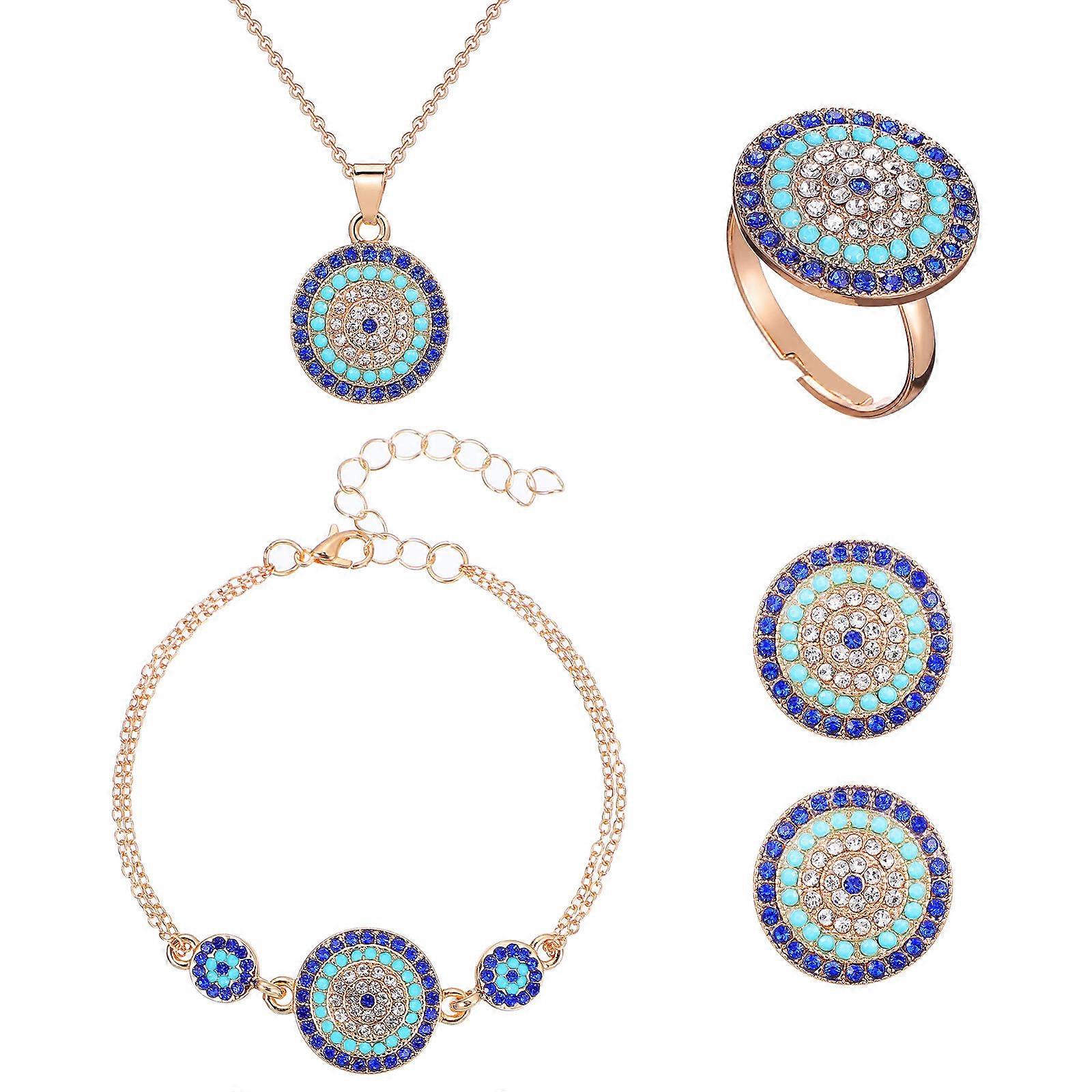 Necklace and Ring Set Female Jewelry Kit 3Sets with Blue Eye Design