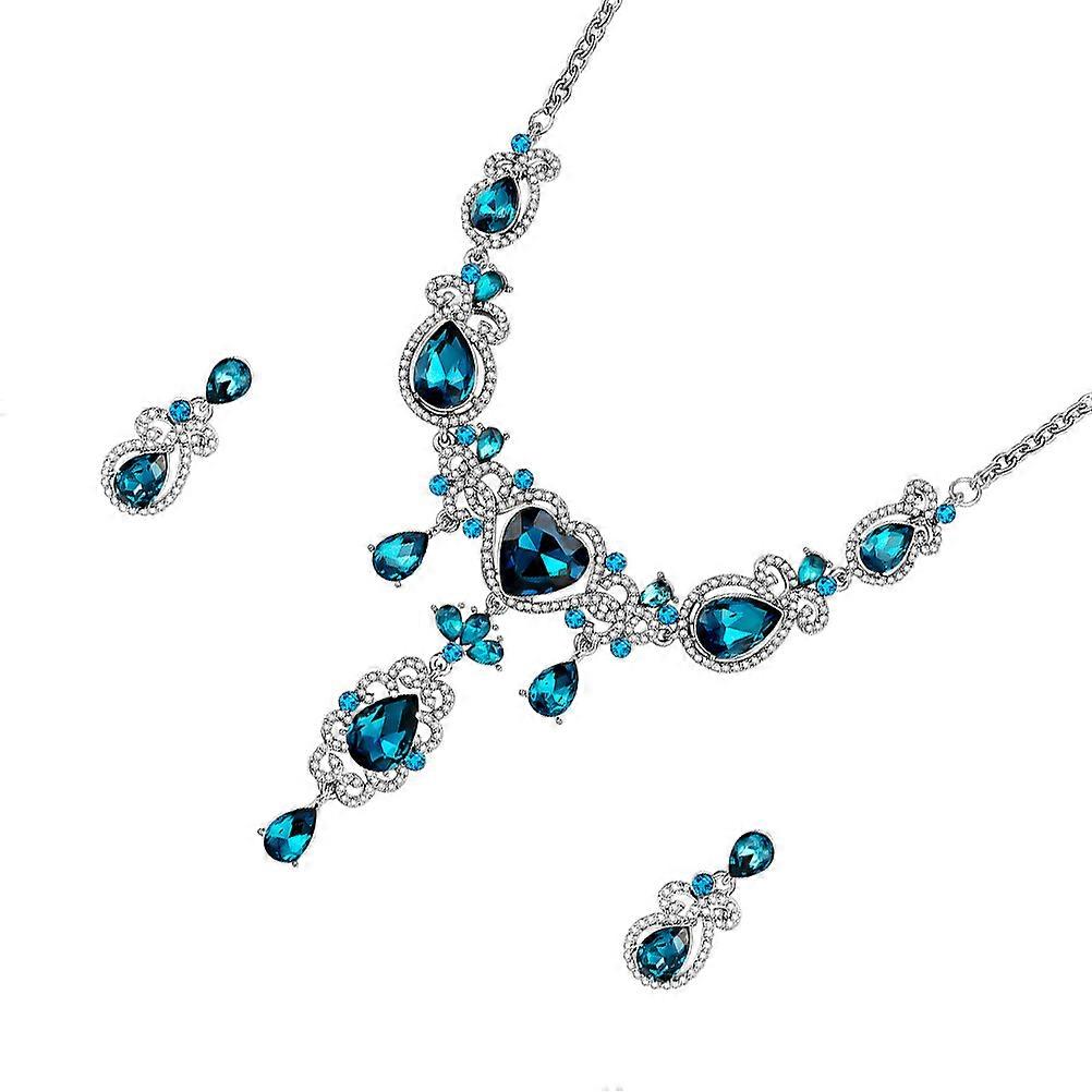 Blue Rhinestone Necklace and Earrings Set for Gift 2Sets
