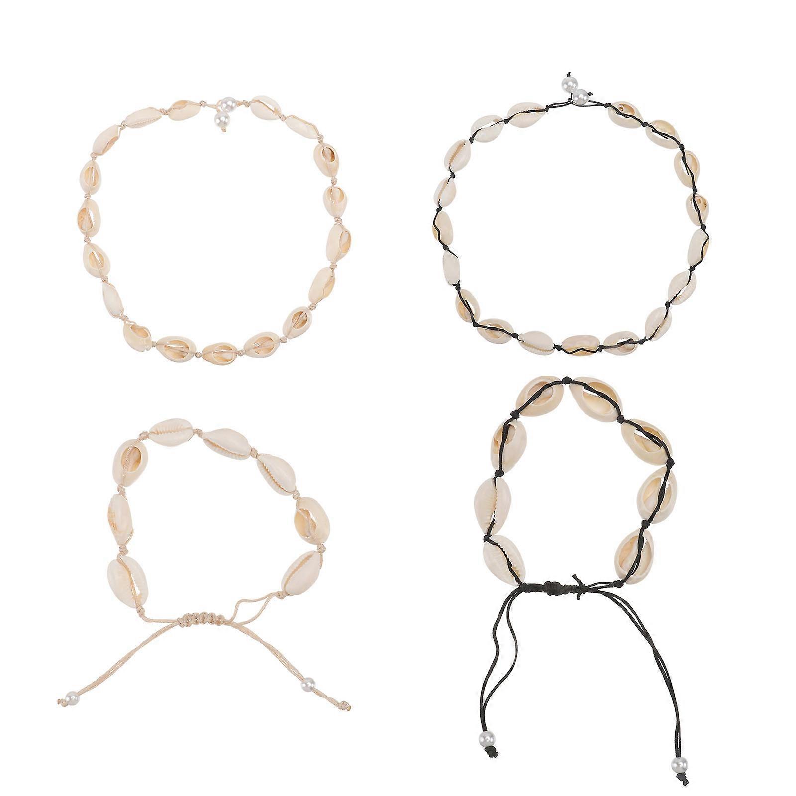 Bohemia Necklace Shell Set for Women with 2Sets Summer Bracelet and Necklace