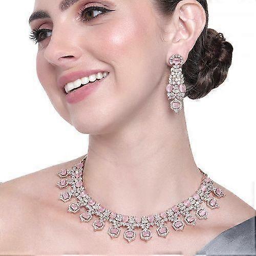 Amazing Estele Rose Gold Plated CZ Mint Pink Stone Necklace Set For Women