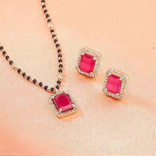 Women's Maangalsutra Estele Rose Gold Plated Square Zirconia Ruby Stone Necklace Set