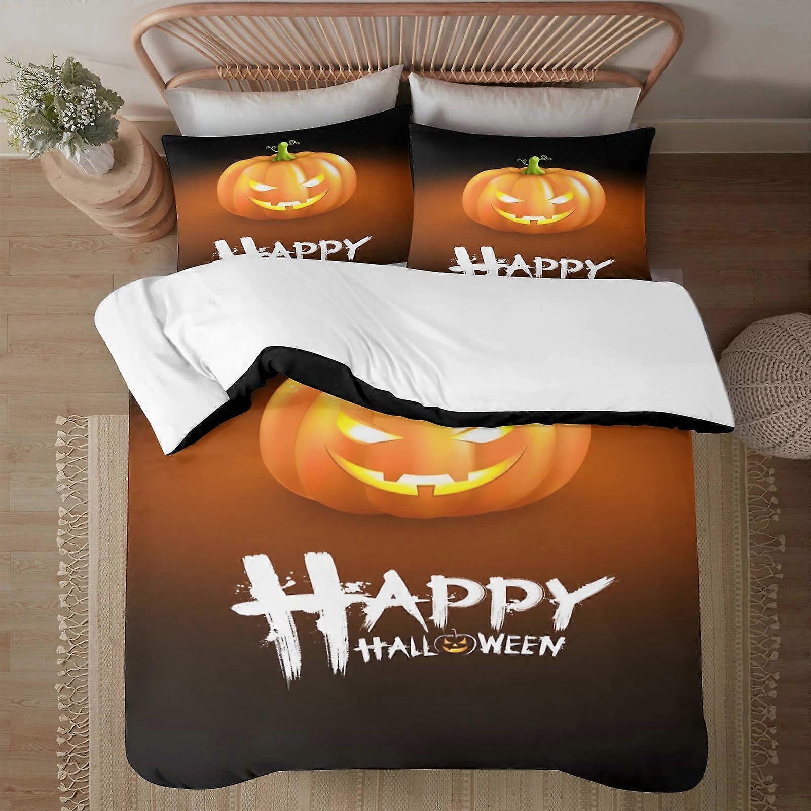 Halloween Quilt Set - 3PC Comforter Set with Pillow Shams, Soft Bedding for Bedroom Decoration, Multi-Size, Compatible with All Seasons