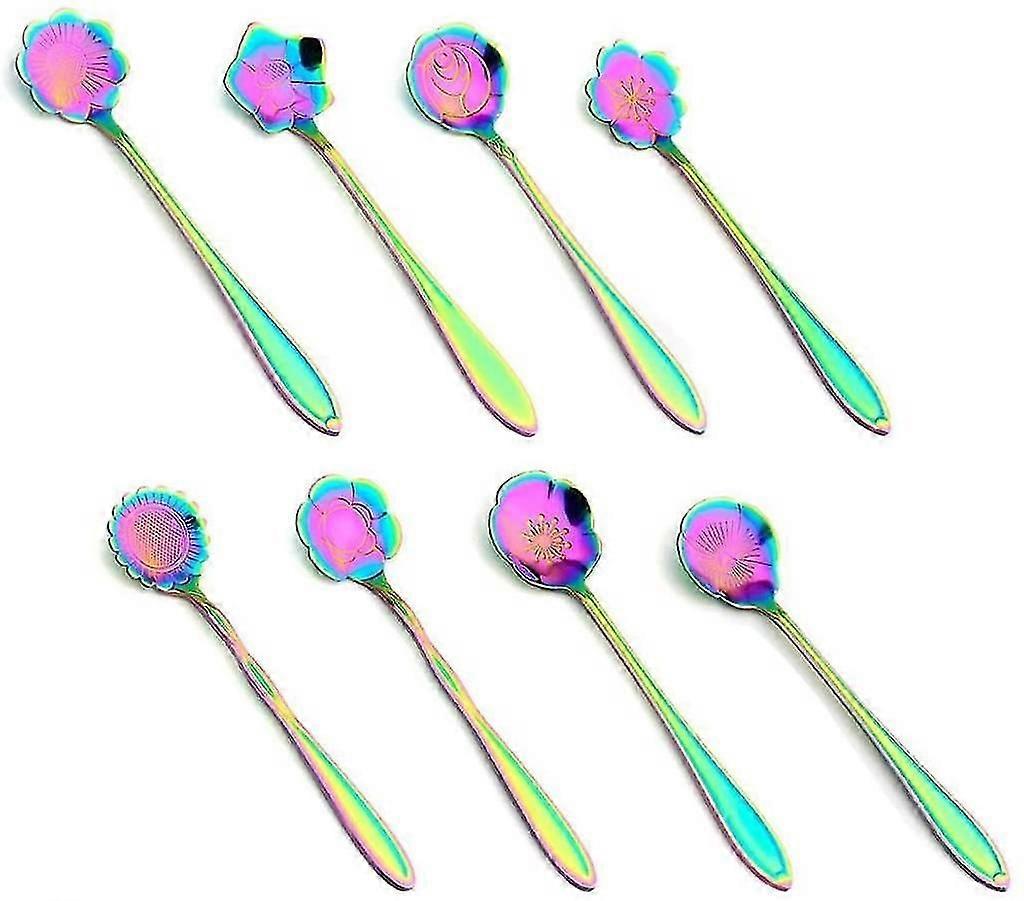 Flower Spoon Set, Set Of 8 Stainless Steel Teaspoons Colorful Coffee Spoons Teaspoons Mixing Spoons Sugar Spoons, Rain