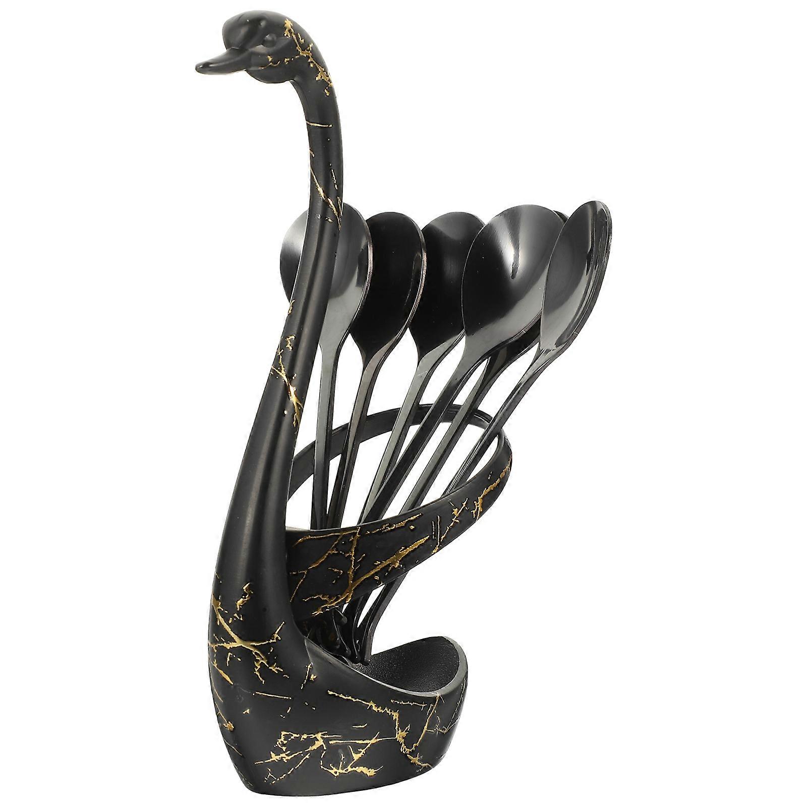 Black Stainless Steel Dessert Spoon Set with Swan Holder for Kitchen 1Set