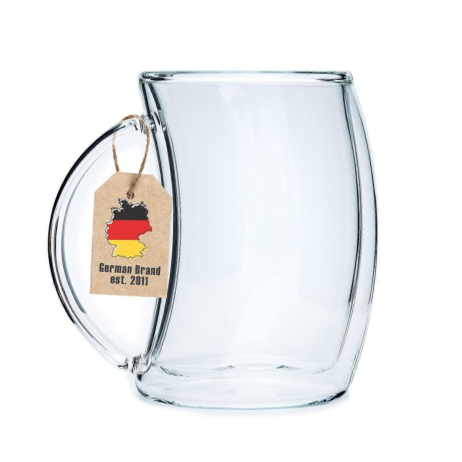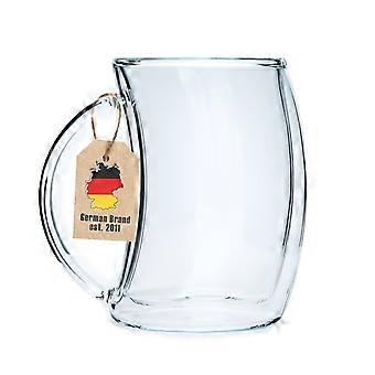 Thermo Kaffee Tee Glas Set - gebogener Style - 200ml - Doppelwandig Mundgeblasen isoliert für Latte Macchiato, als Teeglas oder Kaffeeglas mit Henkel