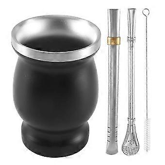 Double-Wall Stainless Steel Yerba Mate Cup Set with 2 Bombilla Straws, Spoon & Brush for Coffee Tea