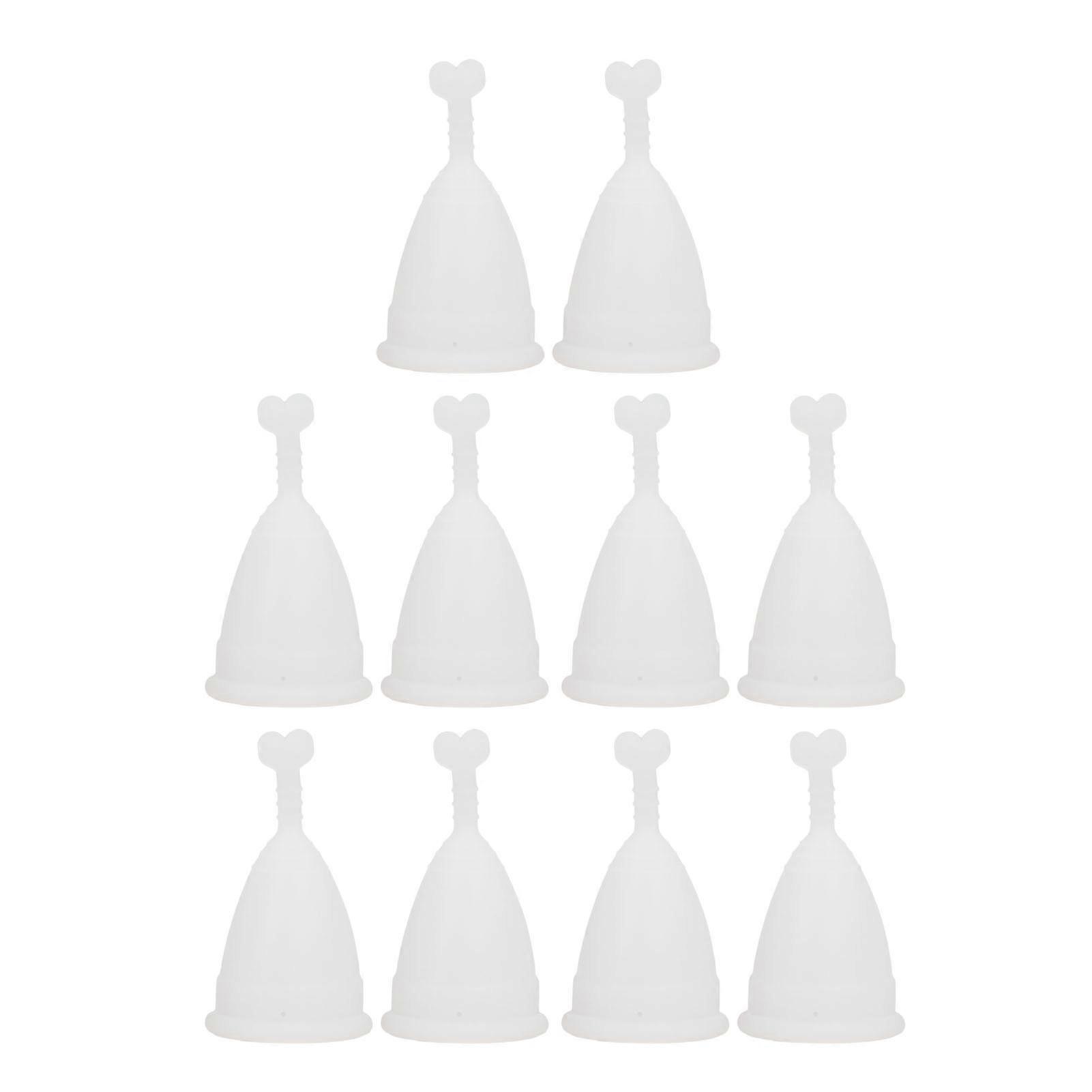 10pcs Flexible Reusable Period Cup Set Women Portable Soft Silicone Heart Shaped Stem Menstrual Cup