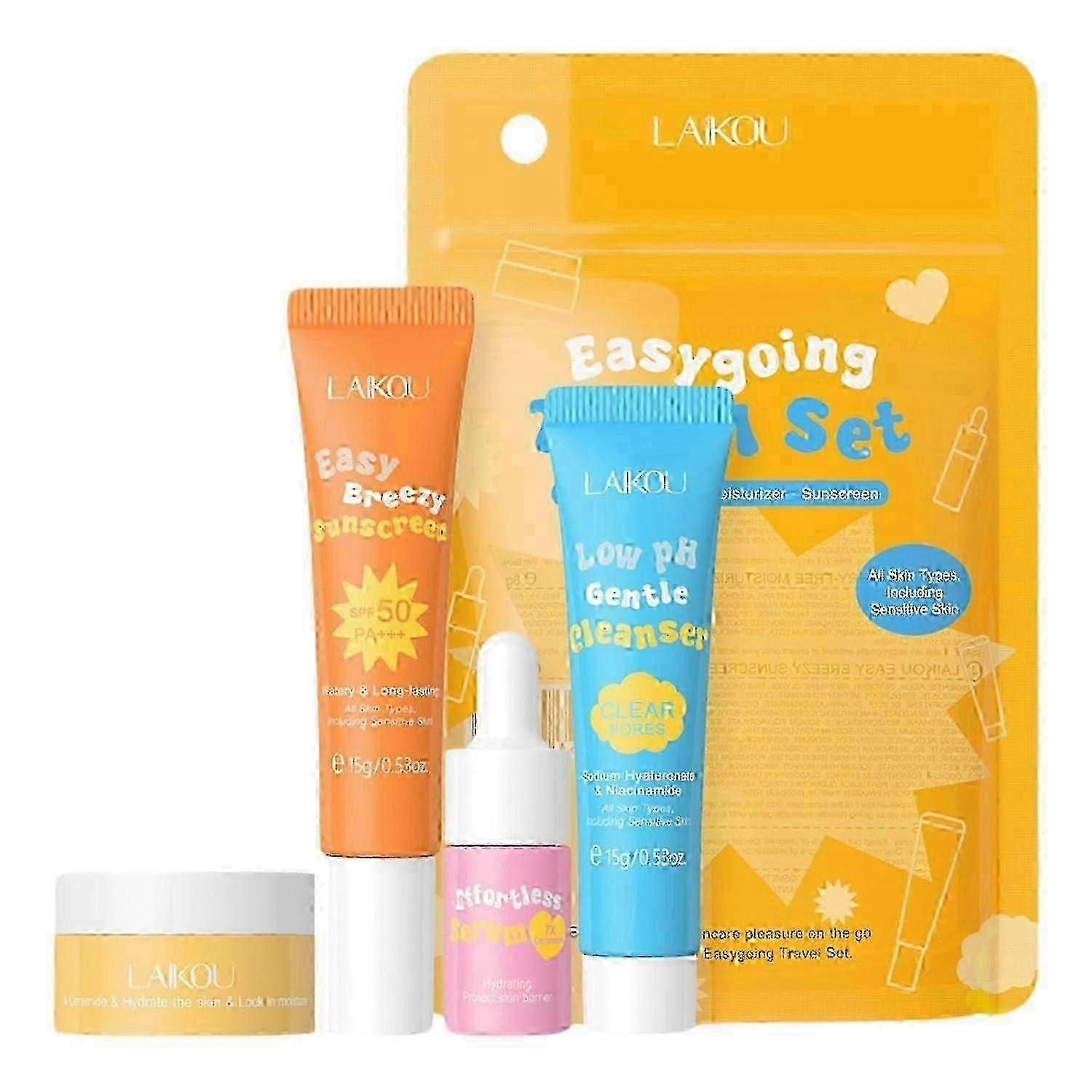 [Skin Care Set Travel Kit]: This 4-piece travel size face skin care set contains facial cleanser, facial cream, facial serum, sunscreen.Hydrating and moisturizing the skin and travel size suitable for vacation. [Efficient Hydration]: Daily face skin care set can replenish moisture for skin, achieve long-term moisturizing skin care effect, make skin moist and tender. [Fast Absorption]: The skincare product is a lightweight formula that does not have a thick sticky feel, does not clog pores, ensures rapid absorption and moisture penetrates deep into your skin, improves the skin, and makes you look more vibrant and firm, full. [For All Skin Types]: Whether the skin is oily or dry, this skincare set is designed to be gentle and suitable for all skin types, providing face care for teenage girls and Women.The Skincare Gifts Set is small and light, easy to carry, does not take up too much space and can be put in a bag at any time,suitable for taking when travelling. [Gift Sets for Her]: Perfect gifts for teenage girls, women, your family, lovers and friends on any occasion with this travel holiday gift set .works great as anniversary gift, Mother's Day gift, valentine's gift, thanksgiving gift, Christmas gift and birthday gifts for women.Send them beauty, make them more confident! Note: Due to the light and screen setting difference, the item's color may be slightly different from the pictures. Please allow slight dimension difference due to different manual measurement. Sold by-YJL official store