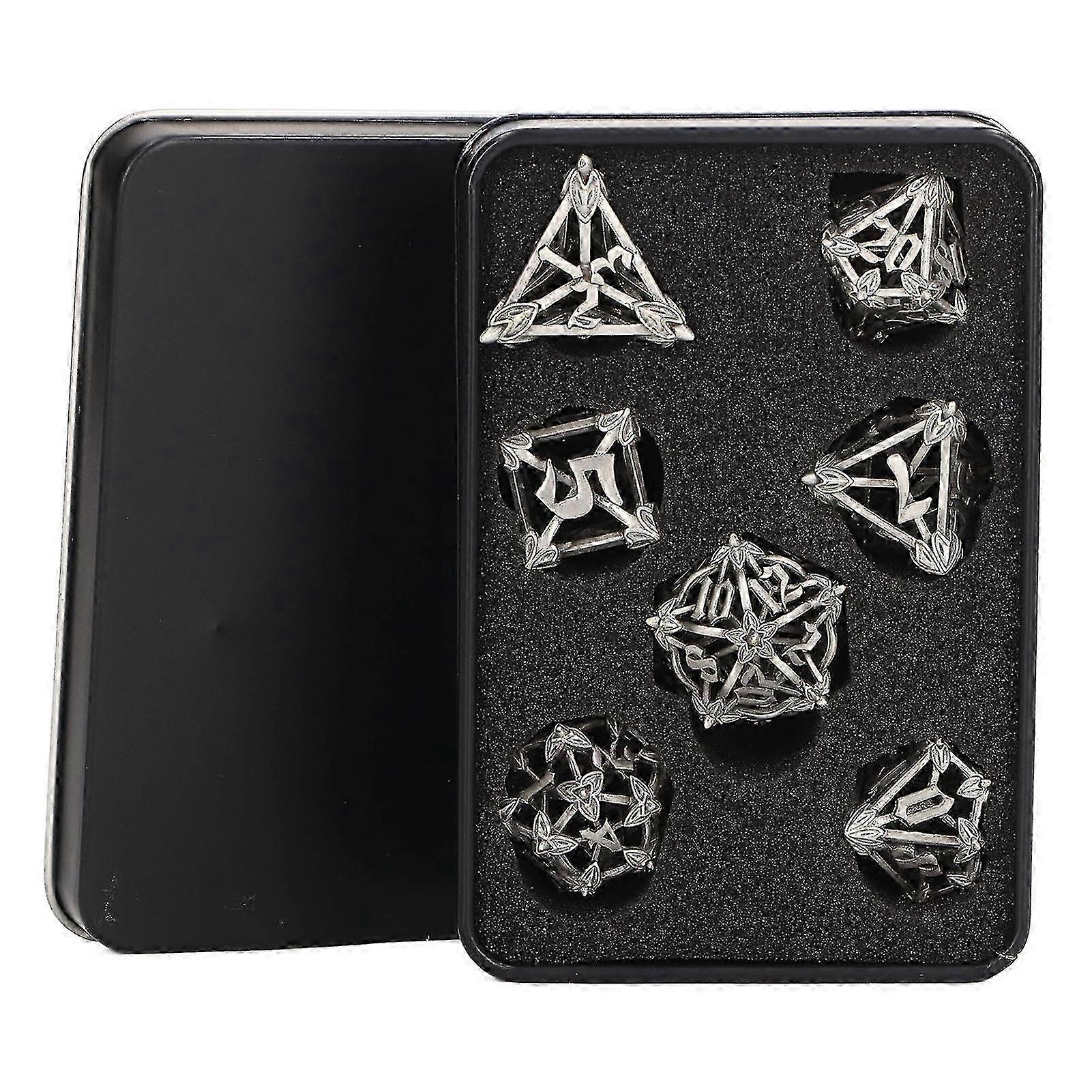 7Pcs Metal Dice Set Hollow Polyhedral Dice Sturdy Multipurpose for Board Role Playing Games White Gold