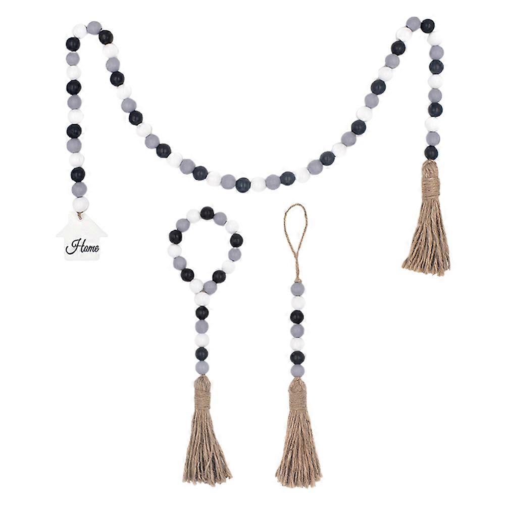 Wooden Beads Decoration Set for Hanging with Hemp Rope Tassels 1Set