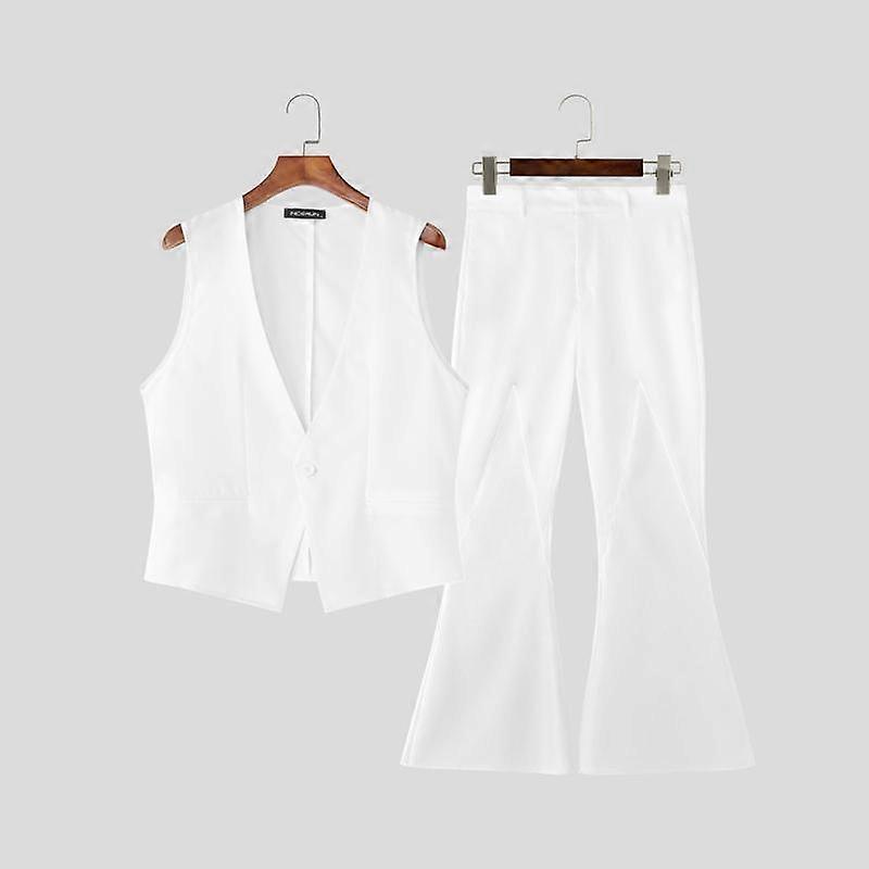 INCERUN Two Pieces Men Sleeveless Waistcoats Long Stitching Flare Pants Sets