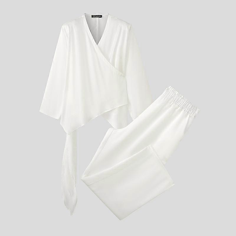 INCERUN 2PCS Men Long Sleeve Irregular TopsLong Straight Pants Sets Two Pieces Outfits