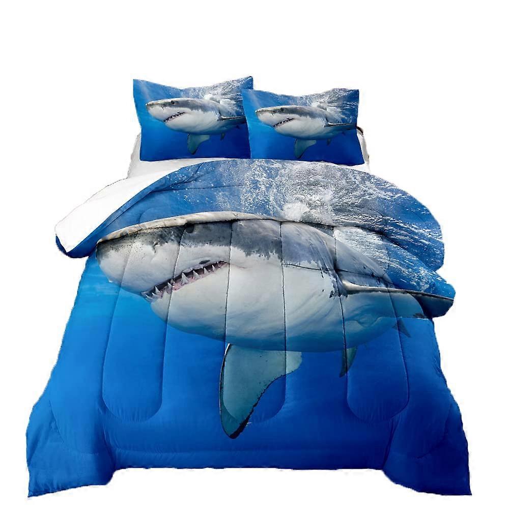 3D Great White Shark Queen Comforter Set, All-Season Blue Sea Animals Quilt for Kids Teens Men, Soft Bedding Set