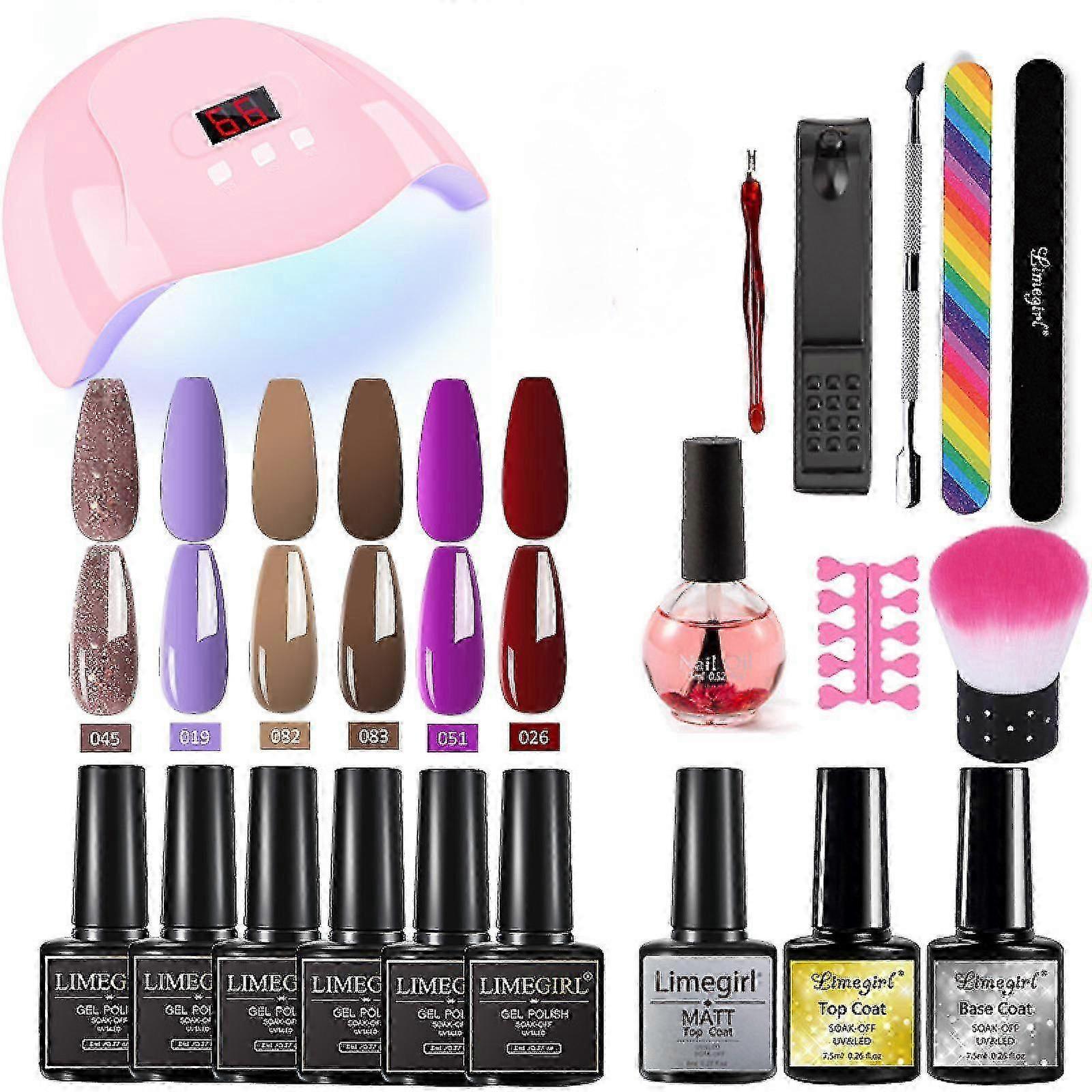 2025 Gel Nail Polish Set with UV Light 54W Nail Dryer, Glossy Matte Primer Nail Art Decoration Tools Gift -GSL