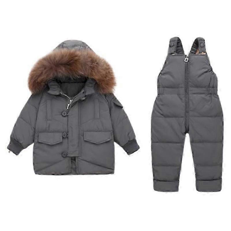 Kids Winter Puffer Jacket and Snow Pants 2-Piece Skisuit Set With Detachable Real Raccoon Fur collar