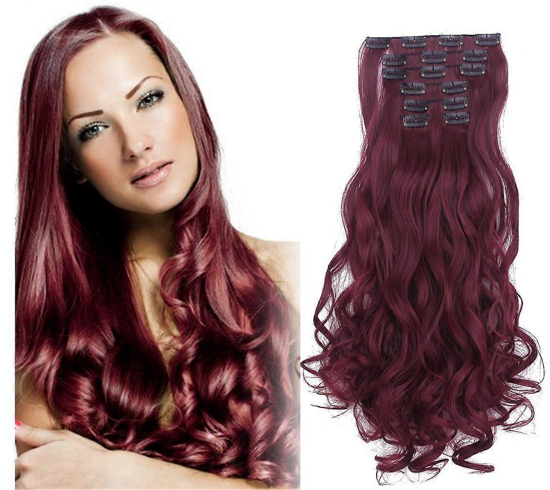 20 Inch Wine Red Curly Clip In Hair Extensions Set for Full Head Coverage and Instant Volume