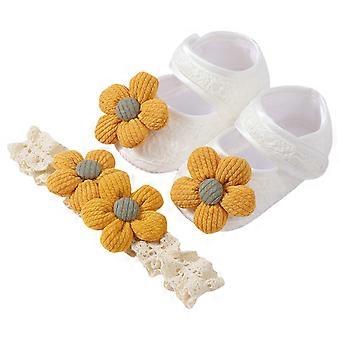 Conjunto de Faixa de Cabeça para Recém-Nascidos com Sapatos de Chão Aconchegantes, Decoração de Flores para Bebê Bebê Elástico Faixa de Cabelo & Sapatos de Caminhada de Aprendizagem Amarelo