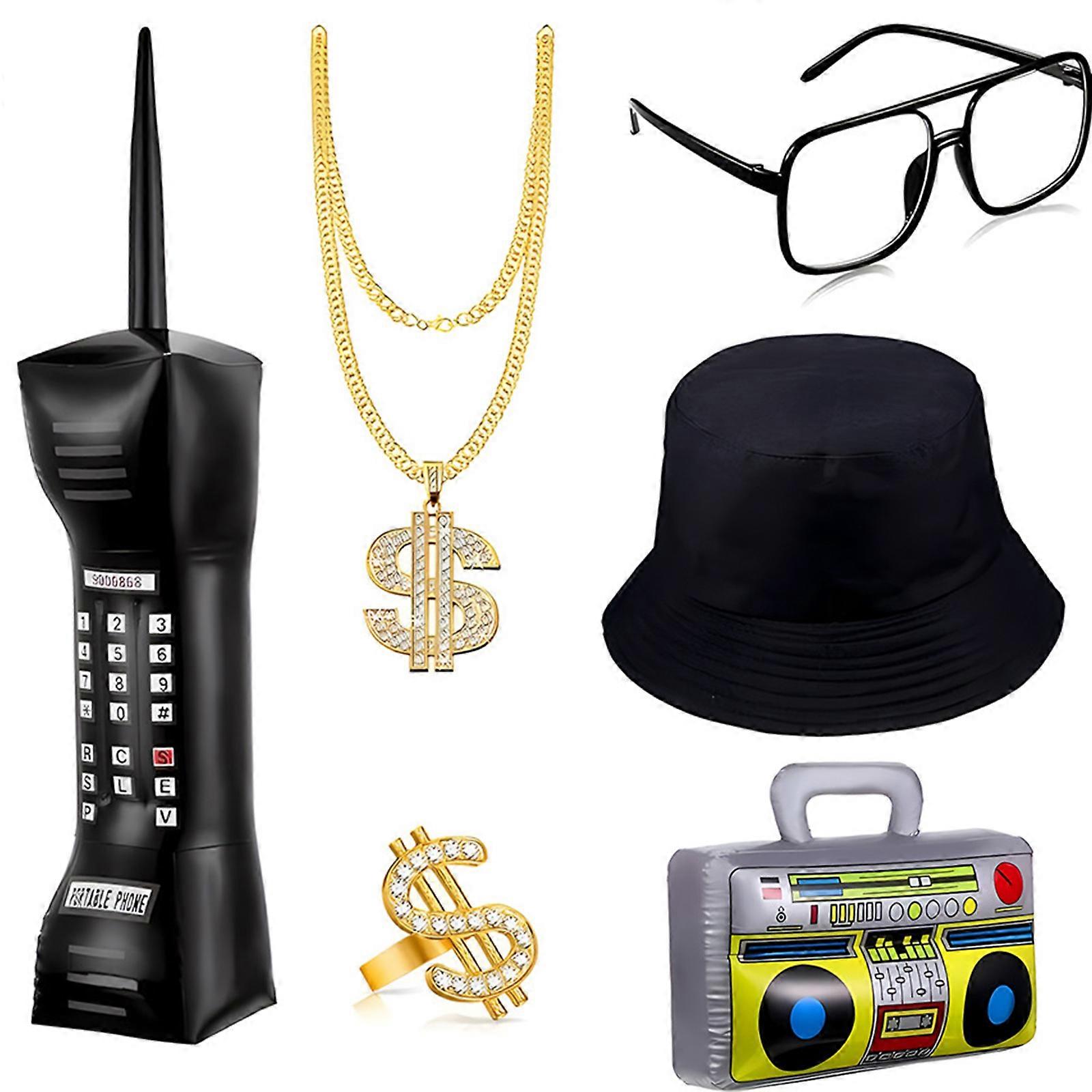 80s 90s Rapper Costume Set 80s 90s Hip Hop Costume Accessories Radio Necklace Bucket Hat Sunglasses for Halloween Party Multicolor
