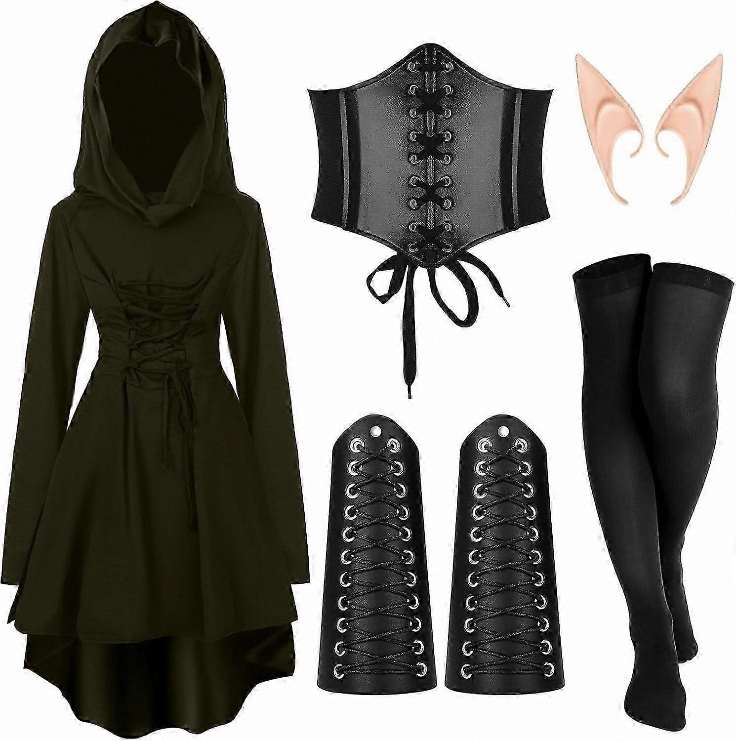 Medieval Fantasy Costume Set with Hooded Robe and Elf Ears for Women